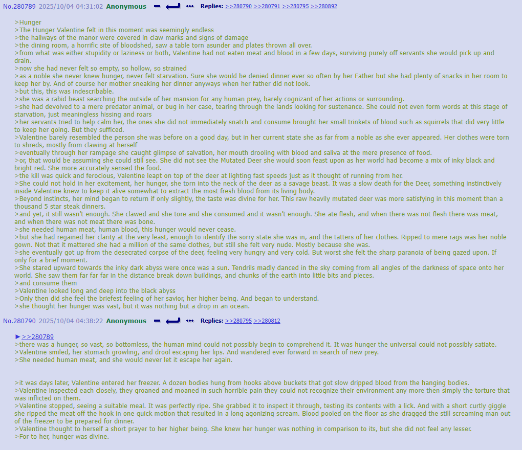 >He turned to her, his smile small, fragile, and unspeakably creepy, like a puppet mimicking joy. >“Our band.” he said, his voice reverent. >“For us. I wanted you to hear it first.” >She stared at the classroom, at the young drones chanting in unison, now just bunch of lifeless puppets. >She didn’t care for worker drones lives as they are now eating them. >But this is a fate worse than dead.
