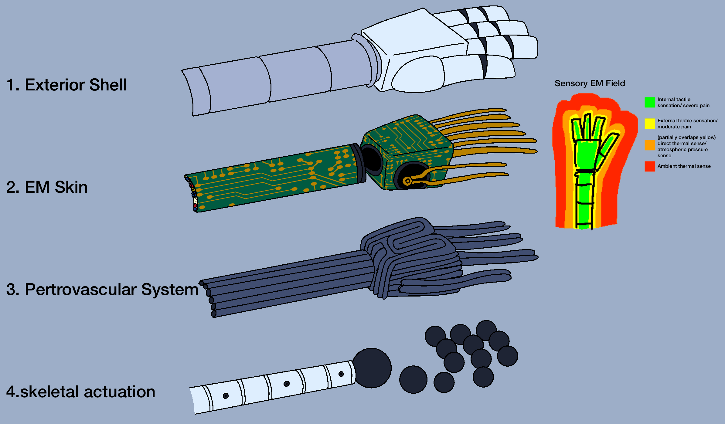 >>313954 >sense of smell There’s a wire-thin olfactory sensor behind a dust filter in the seam between the mouth and screen >sense of touch and temperature pic related >Solver drones It definitely feels weird at first, but I must imagine that their senses are preternaturally sharper then any normal drone or human, in much the same way that they display a level of enhanced physical potence, endurance and reflexes