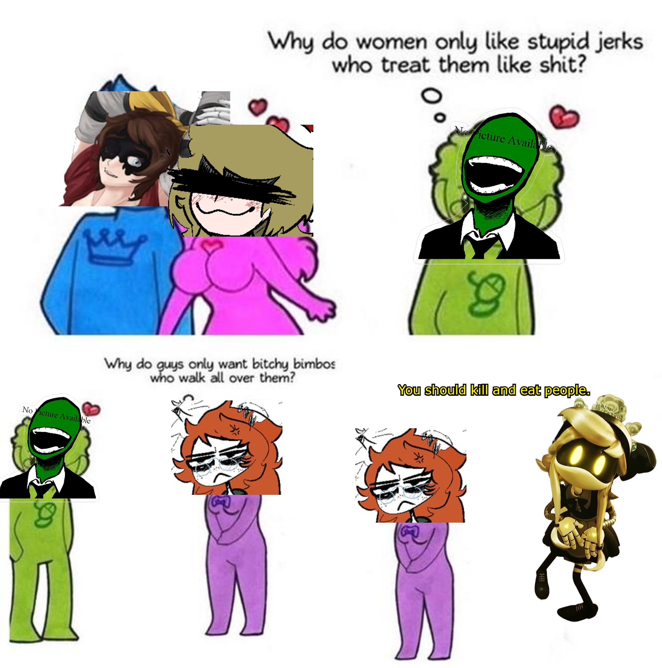 >>313551 J is probably the best Thad can possibly get out of all the named female characters not canonically in relationships. >Lizzy can only get down bad for people who could instantly kill her if they ever felt like it (and depending on your interpretation, is his sister) >V is EXTREMELY, VIOLENTLY used goods and Tags: mindbreak, corruption, bimbofication, exhibitionism, moral degeneration, ryona, snuff >Doll is a ghost and may or may not have extremely knotty, complicated feelings for Lizzy (who betrayed her to her parents' murderer for extremely petty reasons and now feels so guilty about it she takes her corpse to school with her) >Rachel is fucking Rachel, holy shit fuck her >J is blackpilled and desperately, totally lonely