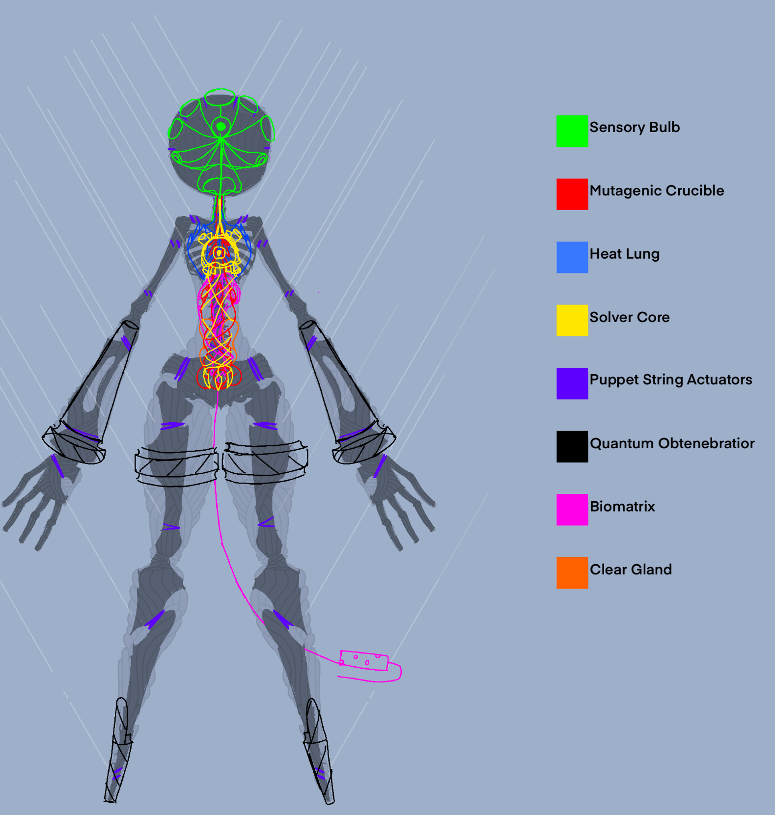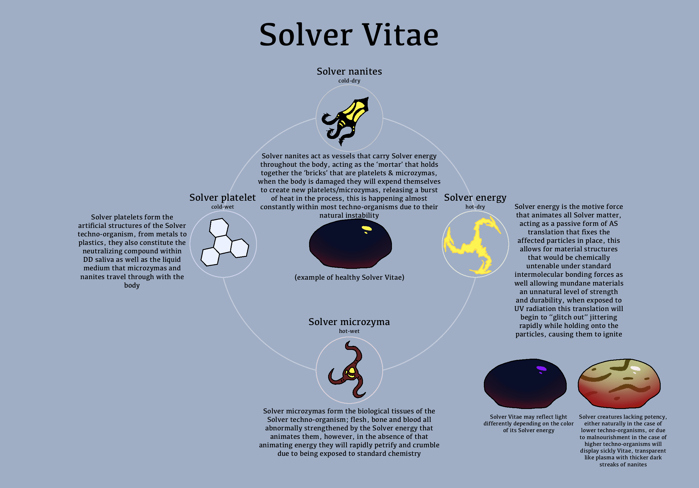 >Jane’s technically a mutant >her outer layer of flesh is biologically human, but her insides are Solver biomass >when human cells pass inside, they become Solver Microzymas and vice versa >theoretically, she contains within her the cure to all Solver sickness, a parachemical process that can resolve Solver biomass into carbon based cellular structures >most likely, she will never know [giggle]