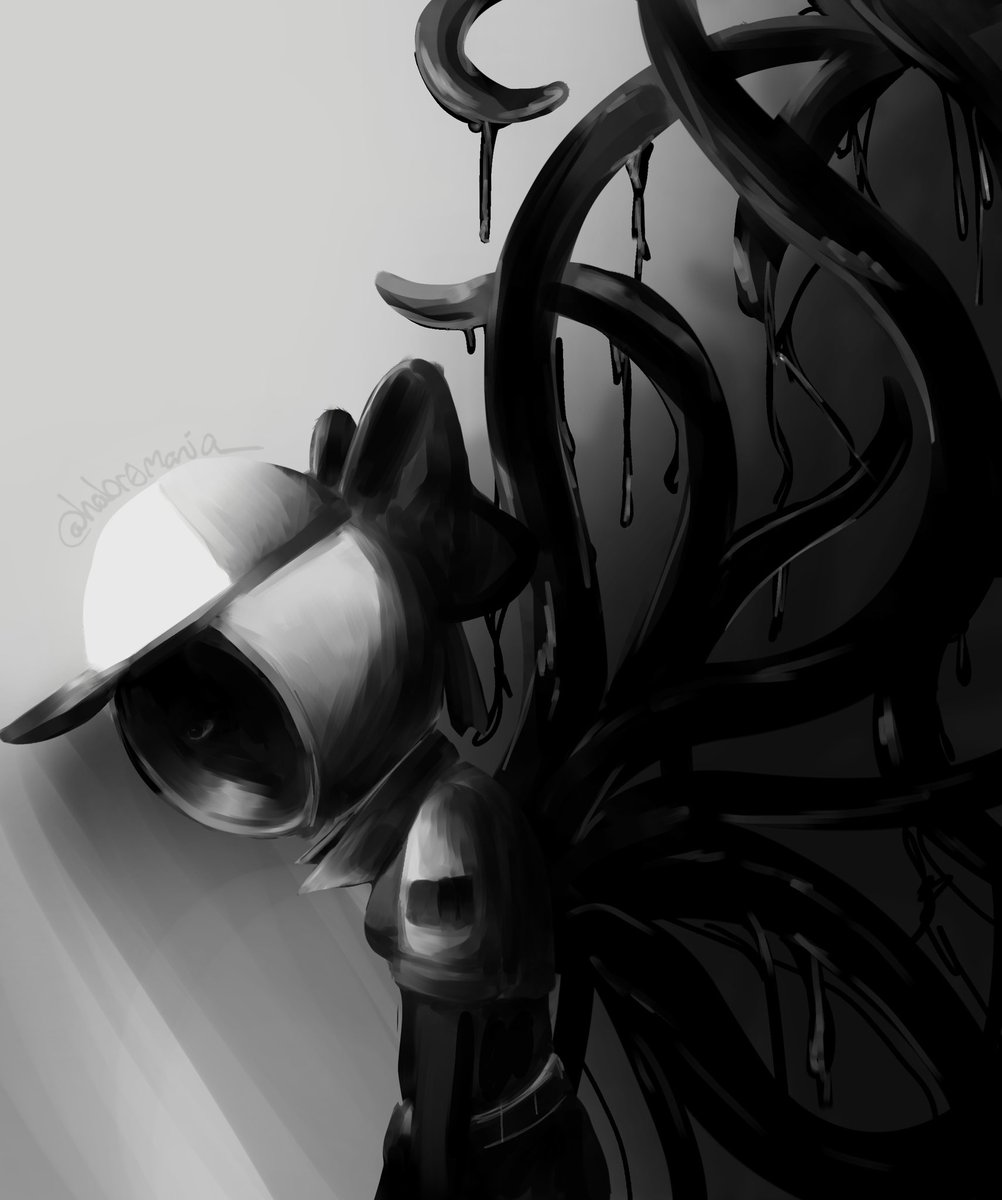 >Be you. > A new drone. > You woke up in a new world, delivered as a drone from across the stars to Anon on Earth. >Anon receives you with kindness, and you bow deeply, swearing to him servitude and devotion as your new master. >It's Christmas, a human holiday Anon explains it to you as a time of joy, gifts, and togetherness under twinkling lights. >Your head tilted in confusion, from those unfamiliar concepts, but the idea warms something deep inside your core. >Anon pats your head gently, a strange spark of affection surges through you, unlike anything you got on your home world. >You work tirelessly to prepare for Christmas, cleaning dishes with precision, baking delicious cookies with sweet scents no one can resist. >You decorate the tree with ornaments that shine brighter than the heaven above. >Anon watches you with concern, asking if you're overworking yourself, but you insist your purpose is to serve. >Your battery drains faster than expected, and you collapse into Anon's arms, coughing up a spongy, pale matter that writhe on the floor before dissolving. >Anon ignores the odd substance, carrying you to recharge, his touch tender like a dream you never had. >As you rest, your vision gets blurry as the room warps slightly, walls breathing, but you dismiss it as low-power fatigue. >You wake with determination, realizing you forgot a gift for Anon, your first true master who saved you from your misery that you can’t afford to disappoint. >Snow falls outside, cold and pristine, your first touch of it. it feels oddly sticky on your sensors. You had never touched the snow before so to experience it was delightful. >You wear the scarf that Anon has gifted you, soft and red, wrapping it around you with a smile that seems too perfect. >Too good to be true. >You tell yourself to focus on your mission. >You push on out despite the worsening cough, searching for the perfect present. >You feel something crawling inside you. >You find a small box in the gift shop that appears out of nowhere. >You hope its contents will surprise and delight him. >After returning home and coughing again that spongy flecks speckling the wrapping. >You gave your gift to Anon. >With excitement, Anon opens it and tells a joke about how drones like you make holidays magical. >His laughter makes your core feel warm inside. >The box releases a thick, swirling gas that smells of decay and rot. >As Anon's skin starts to melt, his hair falls in clumps, and the room around him dissolves, his eyes widen in bewilderment and then horror. >His voice cracks in a desperate plea as he reaches out to you. >Then he dissolve into fungal like material. >You look at him helpless and confused. >His screams haunt you. >Then the world around you crumbles: Christmas lights twist into parasitic shroom hat, snow turns to ash, and Anon's leftover unravels like overripe fruit. >The hallucination spores were dissolving from your body when you woke up on the fields of Agro-C. >Your body still rusted and alone. >With a broken smile on your face, you get up and go back to your never-ending work, the emotional wound of your lost joy etched further into your spirit. >You said one last thing with despair: >”Why did I woke up?”