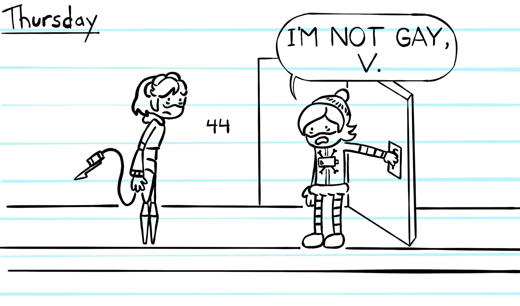 Fulfilling Y's deranged fantasies! I'm just glad she didn't invite Jane this time, I don't like stabbing her with a knife so that Y can drink her blood