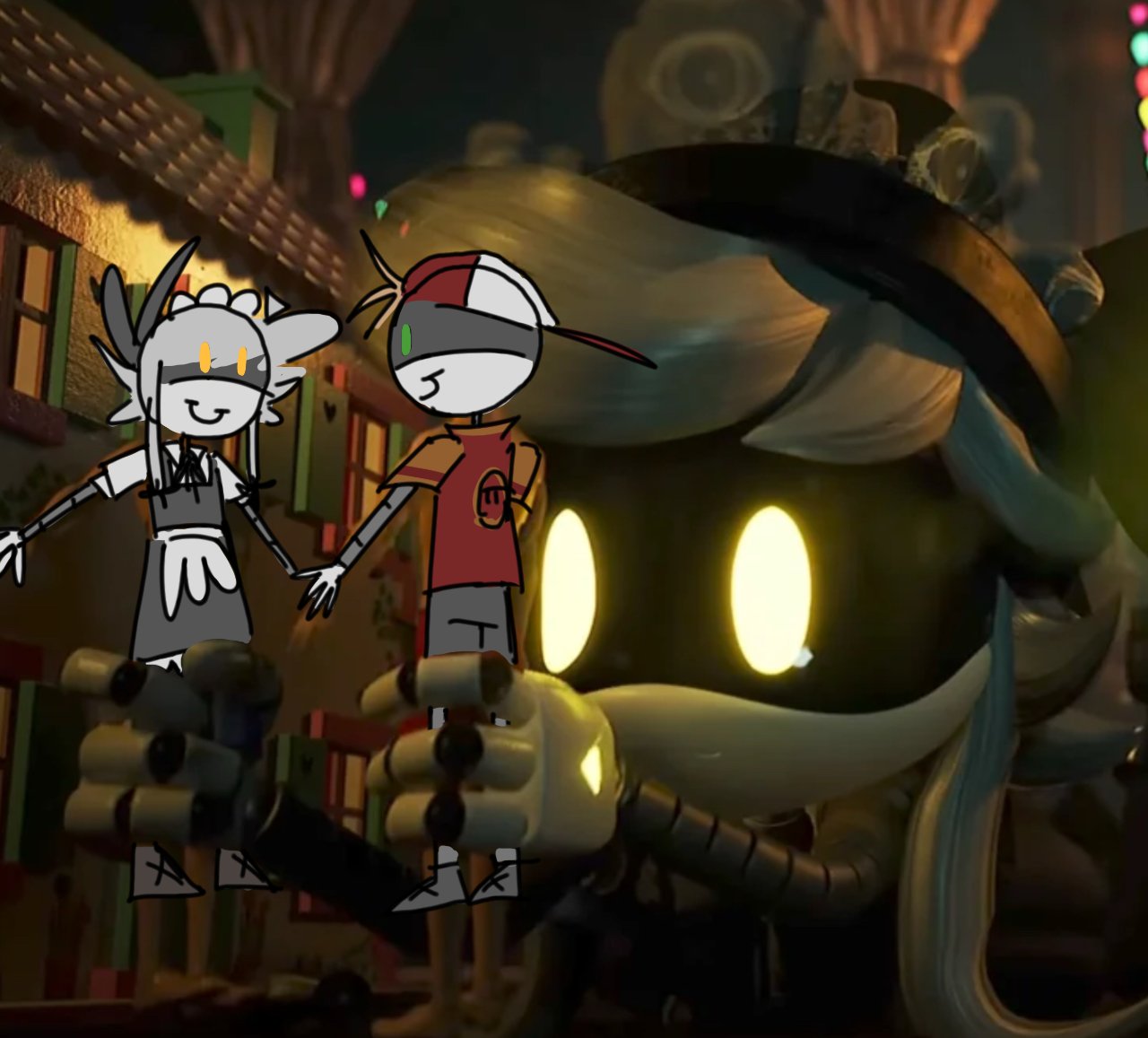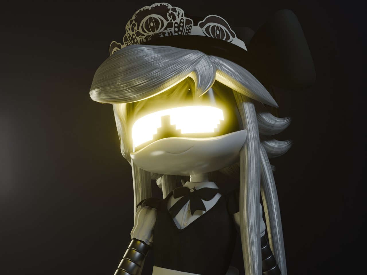 >>316027 Cute! Too bad (you) spilled cheese from the fondue on her jewelry. Hopefully she won't notice. Also, how does she attach those earrings? Small, non-disruptive magnets? Tape? Just puncturing the things into her robo-skull?