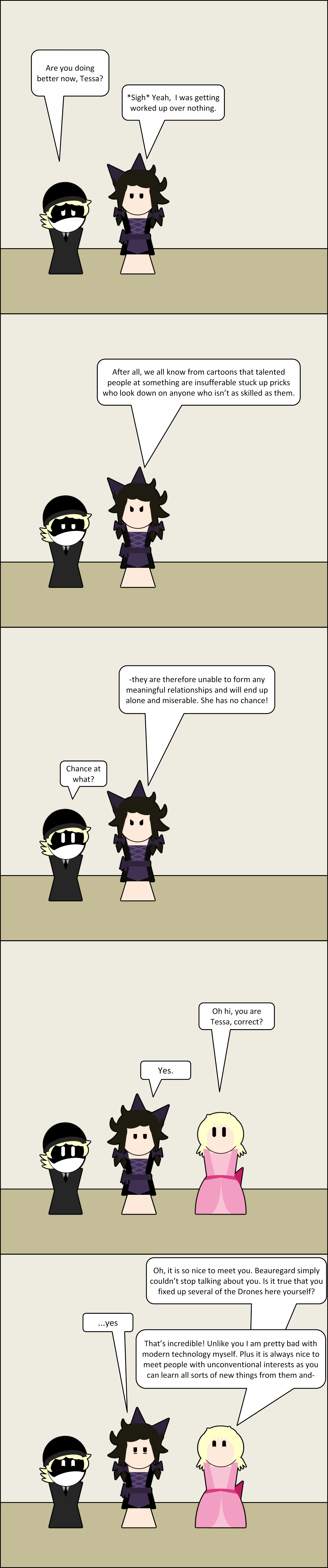 Someone has been mentioning something about the last OC of the year, so have this halfbaked idea I had and worked out. As you may have gussed out from the comic she is much more conventional and “girly” to contrast with Tessa. There will be more comics with/about Constanze soon. But if you have any questions feel free to ask. Also the glorious return of pruple Tessa.