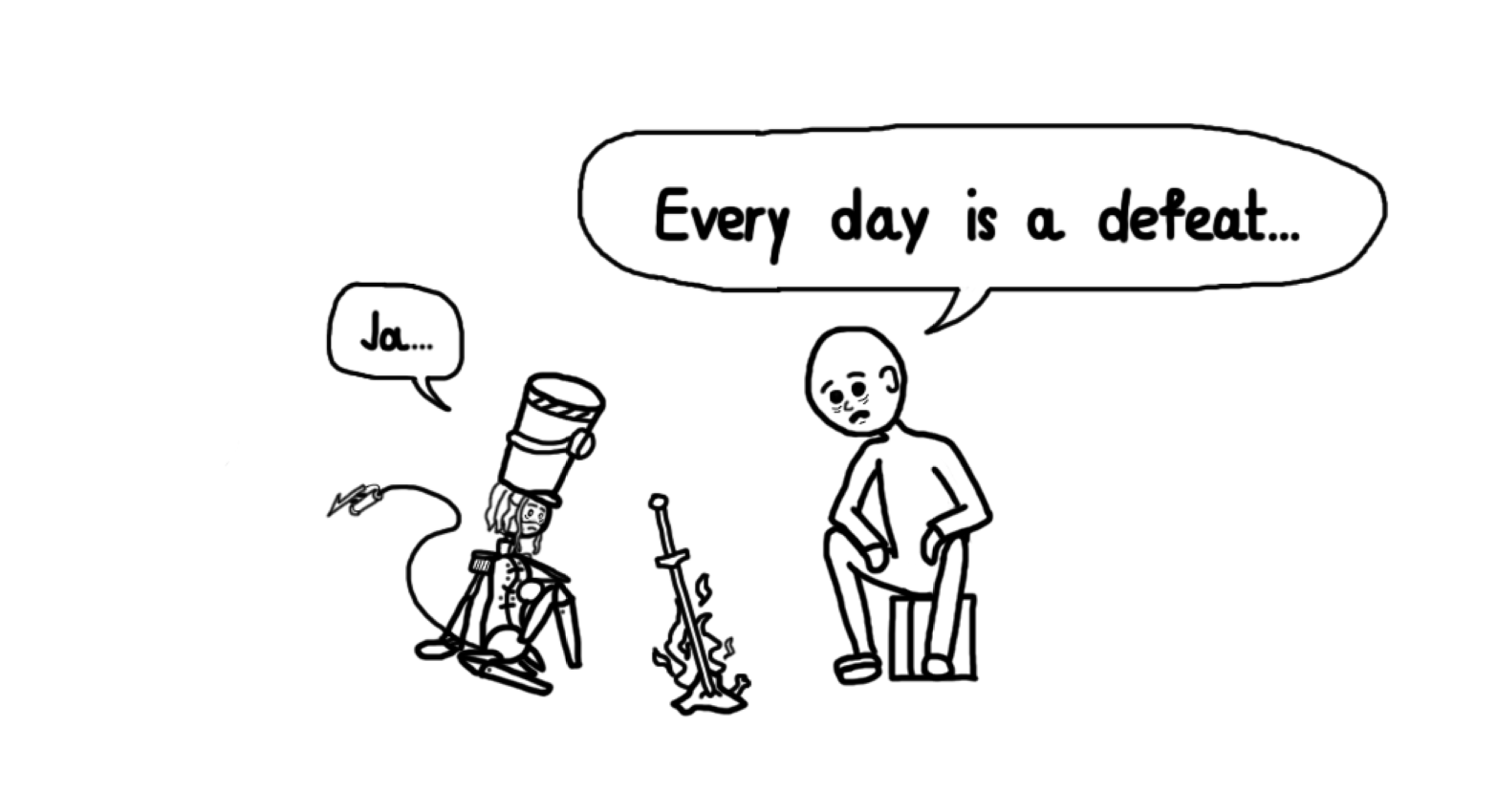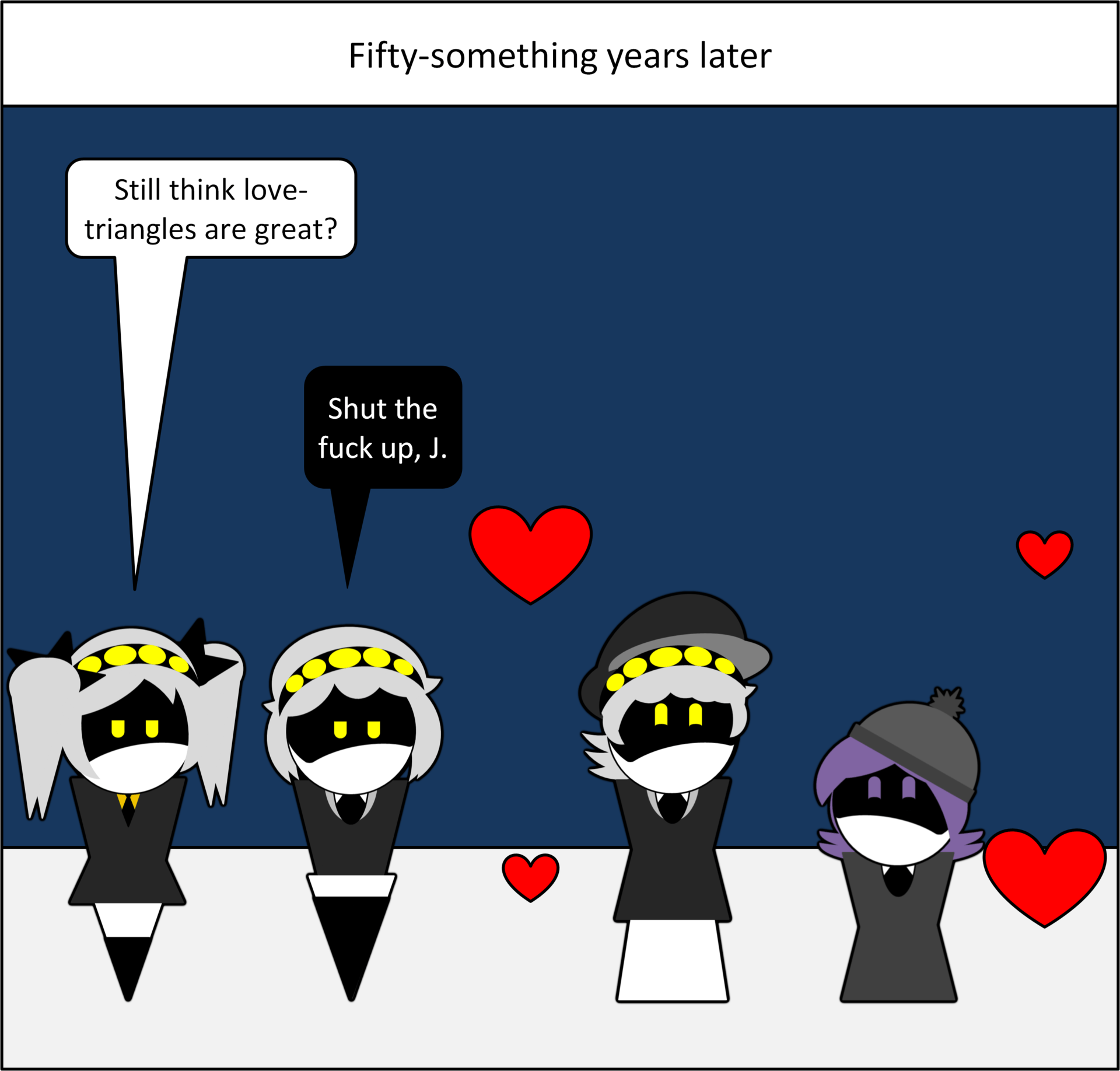 Usually, when a viewpoint switches, it's shown with ellipses to highlight the different parts. The lack of such a distinction left me really confused. Well, at least you got your greentext urge out, which is good.
