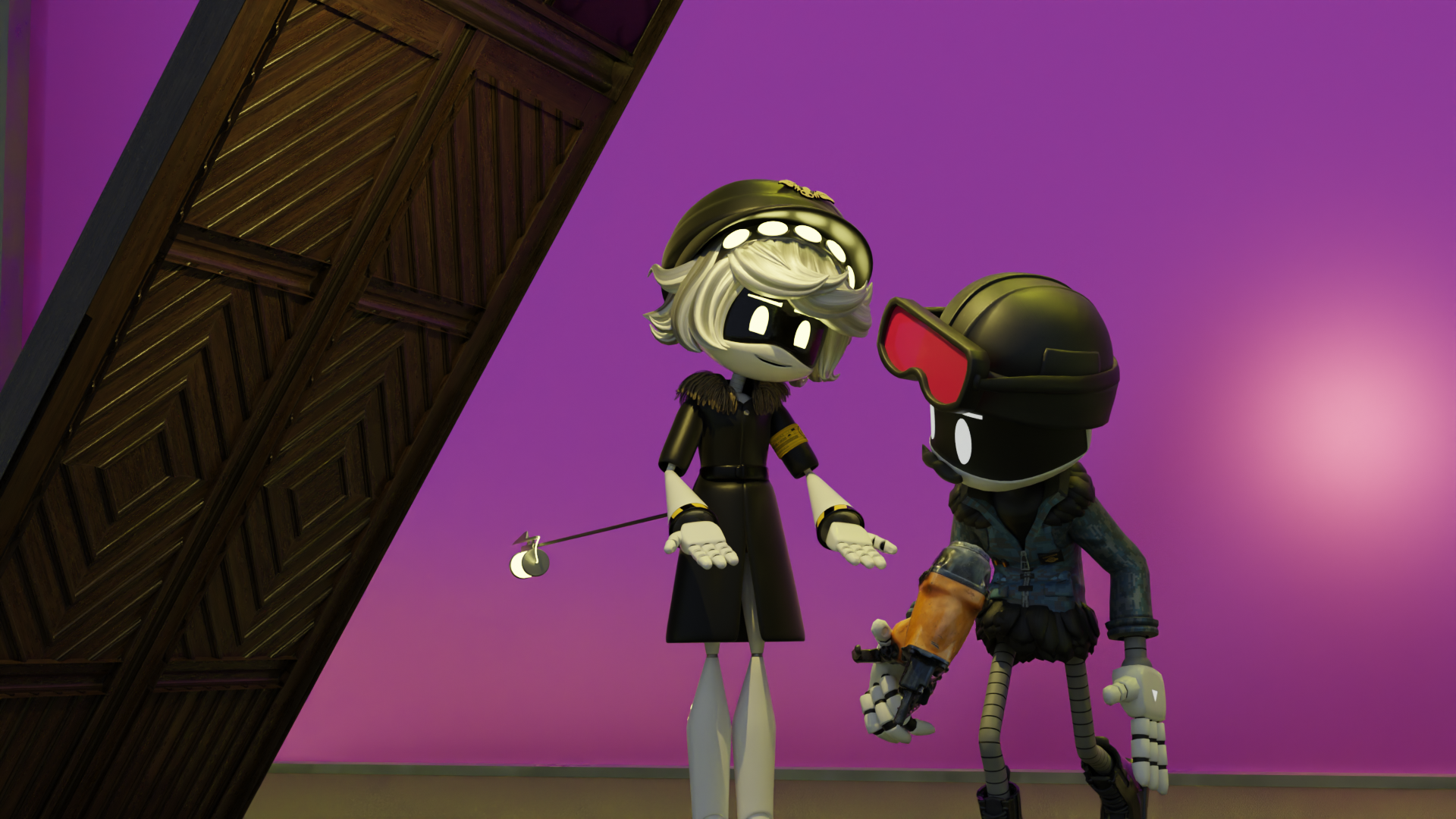 >>316029 >You unconsciously clench your fist > This is what HoDR has made you into. She worked so hard to scare and intimidate you… >You weren’t going to let some insane corporate department get the better of your kindness >You were just so rude to a disabled drone child, you must have broken her heart. >You look too determined to fake fright but there are other ways you can make her day. >You turn around and unsurprisingly find her stalking behind you. Good she’s not completely devastated >You lean down and genuinely smile. “I’m sorry, it’s just that my coworkers act like that to get my attention. I know you put a lot of effort into scaring me..” >You run your hand through her hair >”Don’t touch me human” >You stop but you are still leaning over her. “But if I can’t touch you, how can I give you uppies?” >The cool looking insect like mass of cameras flashes before your eyes once more. >”Do Not" > "treat me" > "like a child" >"human.” > You hear the faint sounds of servo motors in the distance. >”I am not some lost little girl. I am the void the exponential end. I am your goddess and I run this company and your world. “ >”Best find a drone for yourself” >You head pat her, she bears her fags and twists her neck. How cute. She needs a hug >A black ball with a text box appears in her hand >You hug her, you don’t know her name but the way she acts and talks tells you she’s been through a lot. There’s probably not much left of her. Perhaps she was formatted then partially recovered >”Let go of me this instant” If you learned a thing about drones working at this company is that they all crave human intimacy. Poor thing, you grip her tighter, but then you let her go. > The one thing you would never ever do is force yourself on someone, you became just like these drones. >Cyn spots a trio of blue lights in the distance. She tries to direct her null at them. But her aim is jerked by a swift punch the gut. > Avre sends Cyn’s body into a nearby support pillar then through several concrete walls. Her bootloop flash stunning Cyn for but a second >Elf had been stalking anon for months. She had her few friends keep him from being fired or worse. >She knew Cyn was a solver host just like any other, and Cyn knew that too. That’s why she went out of her way to enthral or kill any other host. >Elf wouldn’t let anyone, note even a fellow drone, stay between her and her freedom >Avre dashed after Cyn then pummelled forward and into the ground >Using her sensors watched as Cyn’s main body flew through several floors >She calculated the perfect moment to strike >Elf’s XR4-AM13 anti matter canon pierced Cyn’s core. The anti-matter detonation ruining the outmoded drone body along with half the office. >Its good everyone evacuated when Cyn was around >J swept anon up under the guise of upkeeping company policies regarding employee safety. Cyn clearly didn’t need her, and she wasn’t keen on losing another fight >J crashed into a cubical, bootlopped, while a bright blue light illuminated the ruined office. Anon was fine mostly >J took the brunt of the damage so anon was fine. >In the distance anon could hear the laughing of a madman as submachine guns rounds pinged of armour. >Despite having been as close as possible to the epicentre of Gungnir’s blast >Pavo looked way too pristine for a gore coved man slashing at Cyn’s biomechanical body. >His Projection Device not breaking sight with the regenerating mass of machinery >Despite having the freedom to talk to all the cute boys in the cute boys in the office. >He was really pent up >Cyn’s body had begun to string itself together. Despite being cut shot burned and blown up by all the sentinels in the office. >She had managed to bypass some of the other drone’s personalities. Nevertheless, these only slowed down her assailants. >And some disassemblers resided her touch
