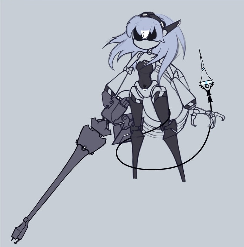 >Her right leg was a tangled mess of molten wires and pipes. Even at its tip furthest from Gungnir the connection heads had merged into a homogenous whole