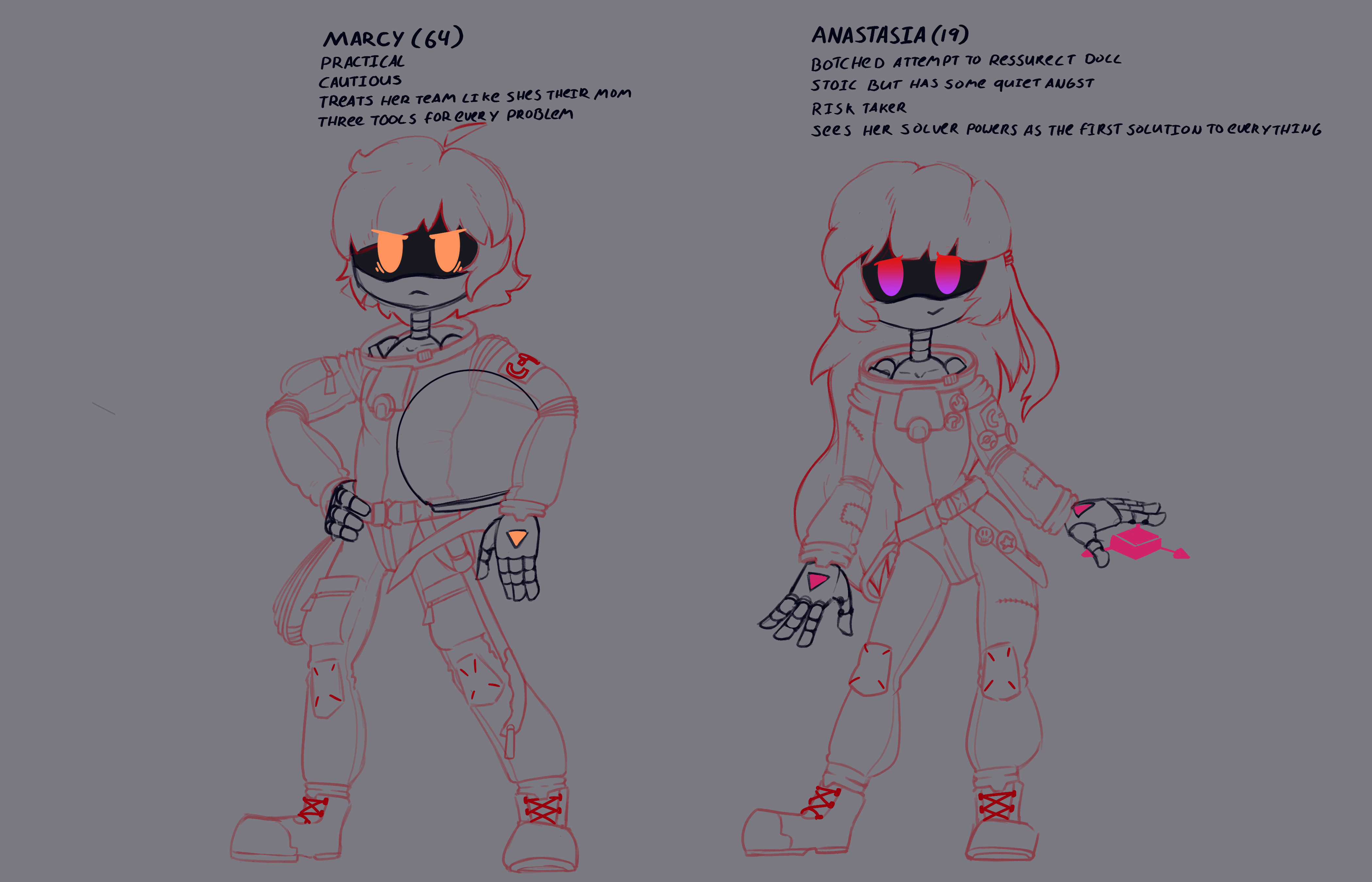 Small update, just adding details and fixing little issues before I go on to lineart in what little time I have early in the morning. I gave Marcy a bunch of extra pockets on her uniform.