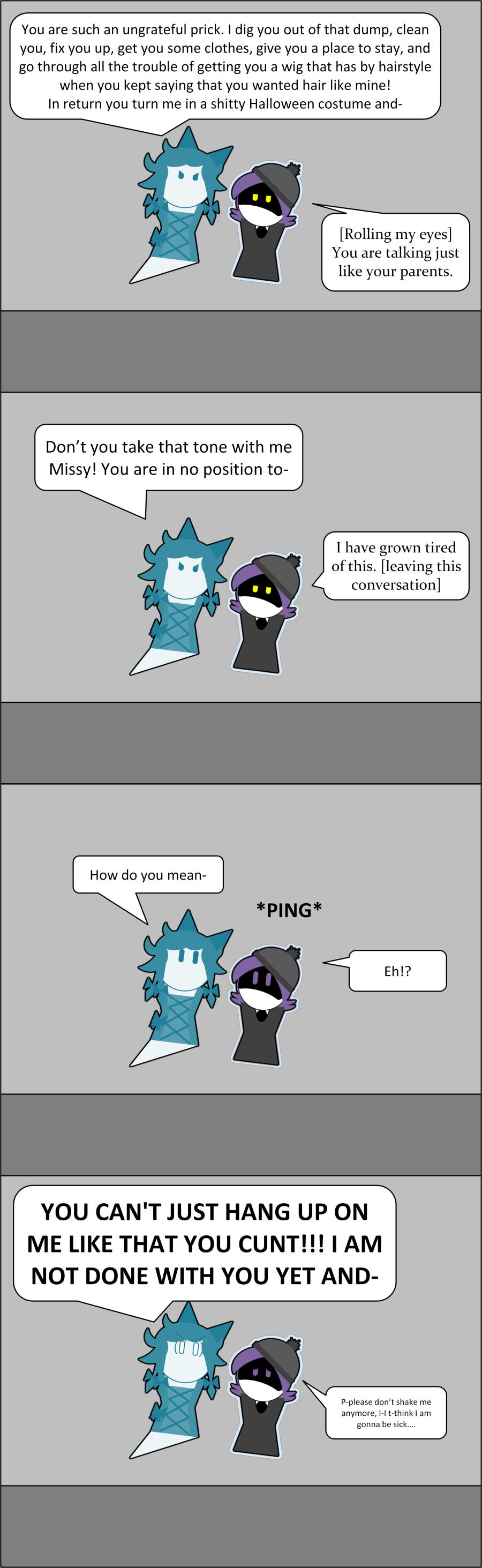 AAAAAUUUGGGHHH!!! MY UTERUS! MY UTERUS IS CRAMPING HARD! VICIOUS, YOU FIEND! YOU WEREN'T USING YOUR BRAINPOWER TO IMAGINE N! YOU WERE USING YOUR ENCEPHALIC ENERGIES TO GIVE ME THE OL' SPICY PERIOD CRAMPS! HOW COULD YOU GIVE YOUR OWN DRONE THE SPICY PERIOD CRAMPS, VICIOUS?!
