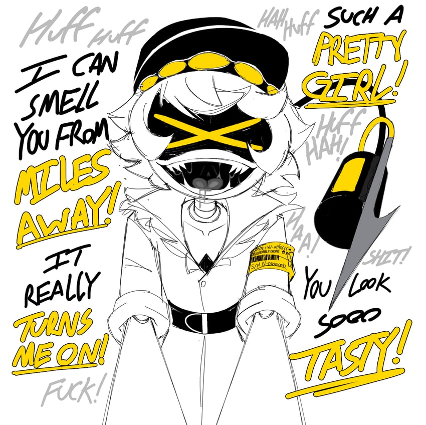 >>318077 >Y has you wrapped in her arms, her face pressed into your neck as she sinks her fangs inside >she sups and slurps your lifeblood, your struggles becoming weak, your vision blurring >suddenly she stops, lifting her face from your neck, her head alonside yours >she unleashes the loudest, most man-ish, most un-officer-like belch you have ever heard >you can feel her body vibrate with the force of her expulsion, her hat toppling from her head to the ground >flecks of your own warm blood and her moist spit spatter over your neck and shoulder >one of her hands reaches to cover her mouth in embarrassment, her digital expression burning with a blush, practically glowing yellow >her core runs hot, fans whirring to life >despite the loss of 90% of your blood, the remainder of blood in your body has gathered entirely in your cock and given you the hardest hard-on you've ever had in your life >Y kills you so you won't be able to tell anyone
