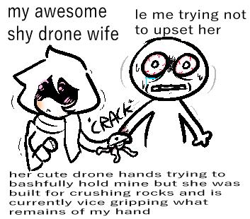 dating a drone sounds good until you realize like a significant percentage of them would have fucked up morals where they're way too quick to stop caring about a death if they even care in the first place and shit like that