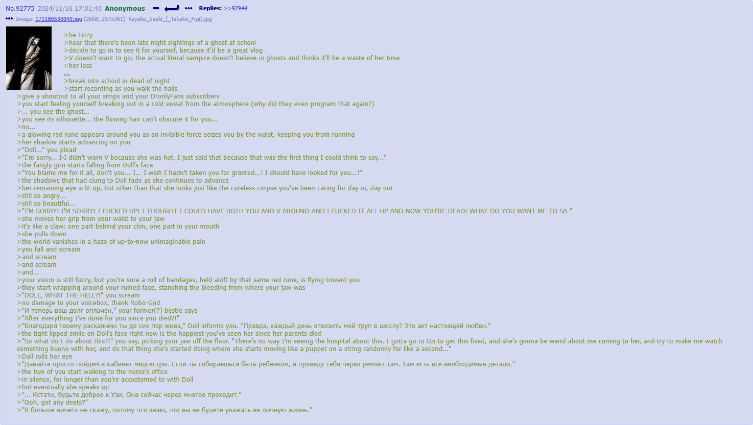 >>318241 She fulfilled her purpose-enable Liam's ultimate goon sesh-and was discarded by the narrative. I'm just surprised I'm the only one who's done anything-two greens and a request to Berryboy-with AJ Dispirito introducing the idea of Tessa getting loose after Uzi ate the AS, like Doll did, and there being a creepy anomalous VHS tape tied to her going around.