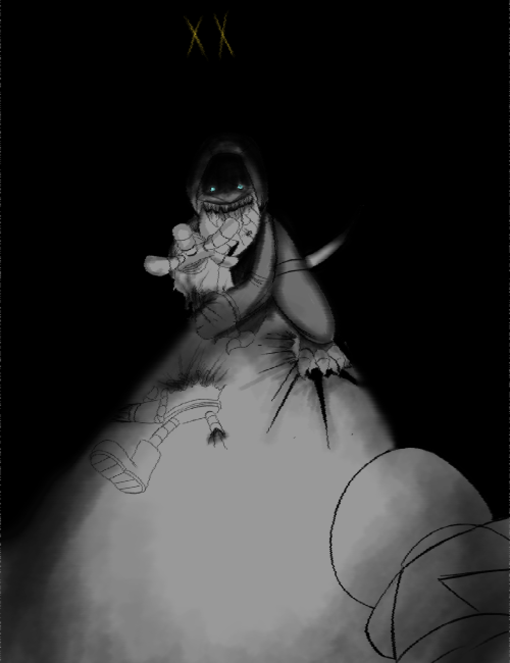 A hilal green I hope you enjoy >Local News Channel 9 reporting in >For today mark a tragedy here within a bunker >For there have been a great lost of life for multiple families >The total amount of people that went out the bunker and stayed till night time was a total of 10 people >Only one came back >Local student Rebecca was the only survivor out of the total 10 >They're currently being administered at the hospital >They're currently state is delirium >What cause this great tragedy?: A rumor going around >That a "Cross Eye demon" lurks within the outskirts of the bunker thus these 10 people went out to prove that this just a mere "myth" >It was proven both right and wrong. Right because there is indeed an being that lurks there but also wrong because there's one thing that the rumor forgot to mention >There was another. As seen here from the recovered memories from one of the victims, please do be warned it's graphic and not of the faint of heart >... >Thus in turn a full scale investigation is currently underway to figure out what might have done this and bring them towards justice >With some authorities considering the idea to work with the Dissasembly Drones to aid with this investigation >More news later on Local News Channel 9 >Stay safe, and keep an eye out for anything suspicious