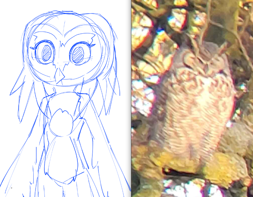 >>319677 I'm actually a huge owl nerd lol. I wanted Keeter's biology to be weird, so taking a few notes from the natural world seemed apt. I thought about outright doing an owl-themed drone before but couldn't really make the idea tangible, so I'm just doing other owl shit (getting a doc written out for a self-indulgent bird story) I woke up this morning to the house smelling like ass, so I figure the owl that lives behind my house caught a skunk and ate it again. She's not even a year old yet and I hope she picks a nest in these woods that raised her when she eventually finds a mate. Might consider building a box for the barn owls instead if she moves out. They're such strange birds and I love them.
