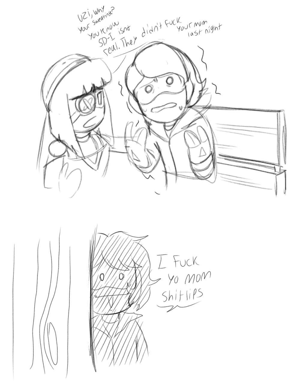 >Uzi: I can't believe mom disappeared for years at least she could give us a call or something. >Doll:[I have issues with my mom too] >Uzi: oh yeah? >Doll:[She's fucking dead.]