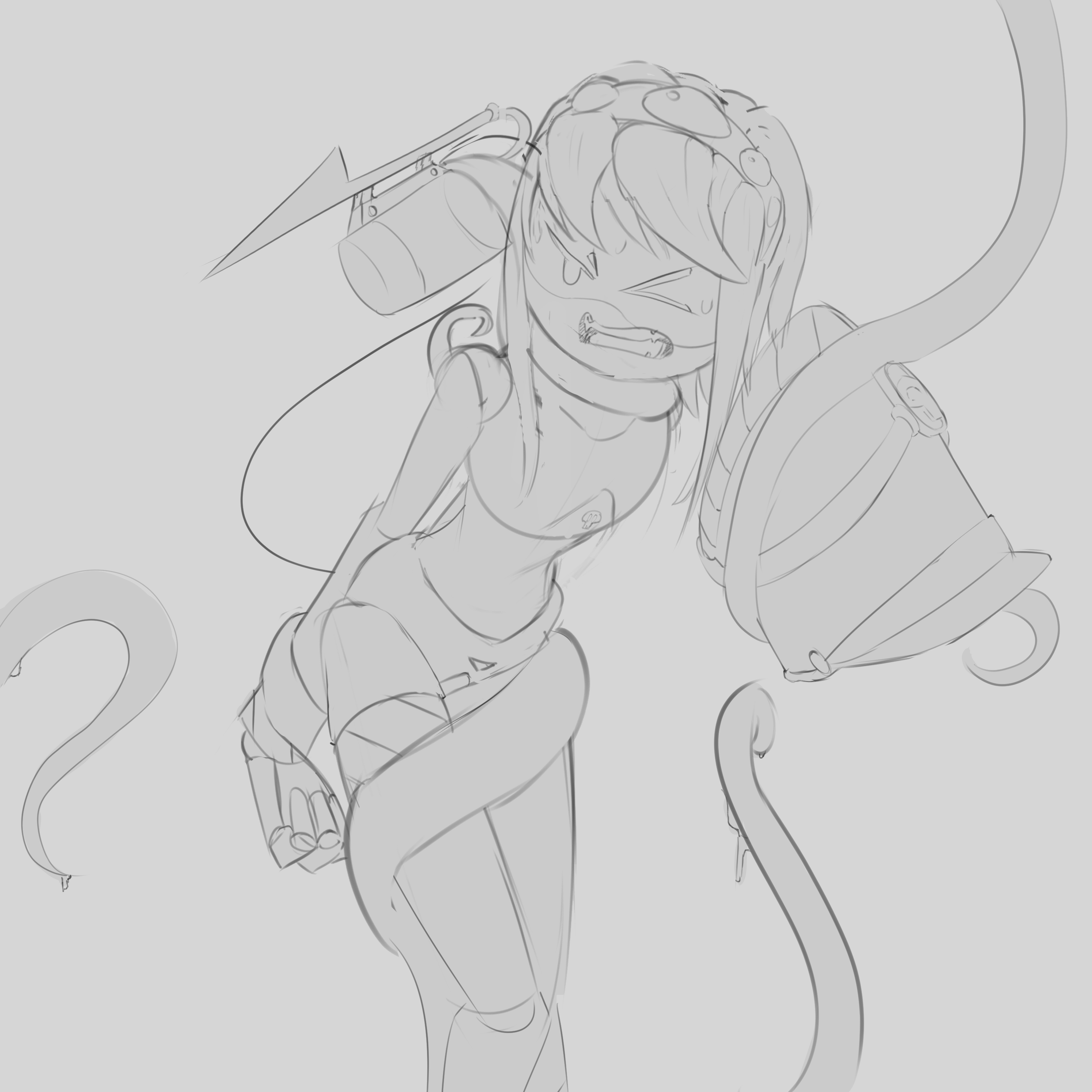 >>319717 I’ll do it! >One of the Solver’s earlier attempts at a DD. See, the Solver had found a host before Cyn, but they were destroyed and the failsafe was implemented in all following Drone models. However, the Solver managed to create a single DD from a poor Janitor Drone. >The DD was kept for study and has been slowly rotting away in some bunker for god knows how many years. Their heat is siphoned off to power devices by the Drone society that emerged on the planet >Poor A. Turned into a beast, now a slave once more