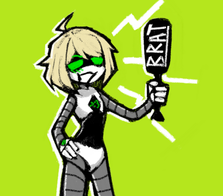 >[Anon is kind, he fixes my arm without asking for scrap] >[first warmth since my parents, swear on their graves: won't lose him too] >[I won't let him have female friends. They would just break his heart.] >[I threatened that I'll stab a drone cuz they almost got too close.] >[I'm always watching out for you my dear.] >[but drones need recharge, proper plug-in sleep mode.] >[I can't afford downtime, what if they come while I'm down?] >[ I remember an old lab story from my mom: energy battery acid, instant 100% boost] >[I steal vials from the abandoned lab, chug one.] >[zap! Systems flood, eyes glow brighter, no fatigue] >[patrol all night, set more traps, Anon sleeps safe] >[next day, another vial, skip plug again.] >[ I feels good, hyper-alert, hear every creak in the wind] >[week later, side effects happening] >[visors glitch, see shadows that aren't there] >[think it's a DD lurking, blast a wall false alarm] >[Anon worries, "Doll, you look... off. Get some rest."] >["Can't," i mumble, hands shaking, "They'll take you too."] >[more acid, dozens now, wires burn like fire.] >[my skin itches, i start scratching circuits raw] >[hallucinations creep: parents' voices, "Why didn't you save us?"] >[see them in corners, cores leaking, blaming me.] >["is Anon more important...?"] >[paranoia spikes, lock Anon in bunker "for safety"] >[he begs, "Doll, this isn't you! You're scaring me!"] >[but the acid burns inside me, "Protect him, at any cost"] >[days pass without plug, frame glitches, oil turns thick and black] >[ i rip at my own wiring, "Get the voices out!"] >[Anon tries to help, you shove him back, claws extending unintended] >[one night, acid overdose hits peak] >[see disassembly swarm everywhere, even in Anon's eyes] >["They're not real!" I scream, lunging with solver haxs.] >["You won't take Anon from me...] >Then >he gasps, "Doll... why?" >[crumple beside him, systems frying, shadow ghosts laughing. ] >[last thought: I protected him from everything but me] >[I'm alone again.]