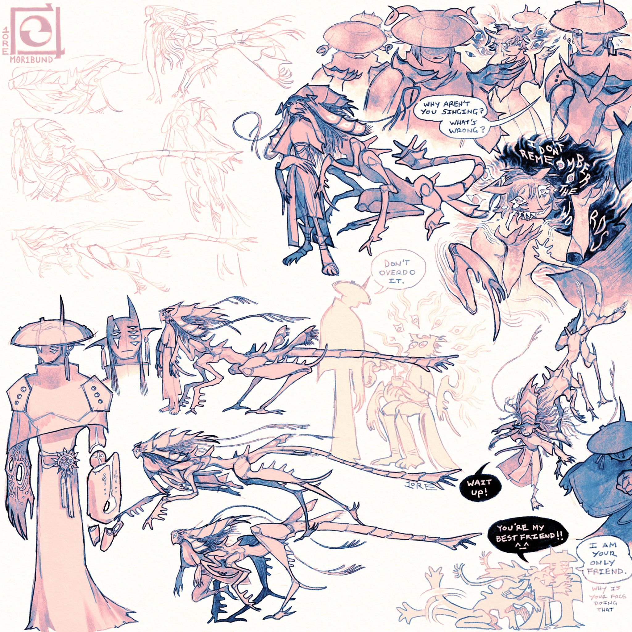 >>320017 While I've done a handful of unique individual mutants I always figured that most of the Solver's horror is about the annihilation of the individual. Unique creatures with their own personalities are the exception, the rule is a violent loss of physical and mental individuality, the experience of being eaten without ever fully dying from it. It would be the experience of being literally peeled apart and used as building material for something that is both distant and impersonal but simultaneously amused by your suffering.