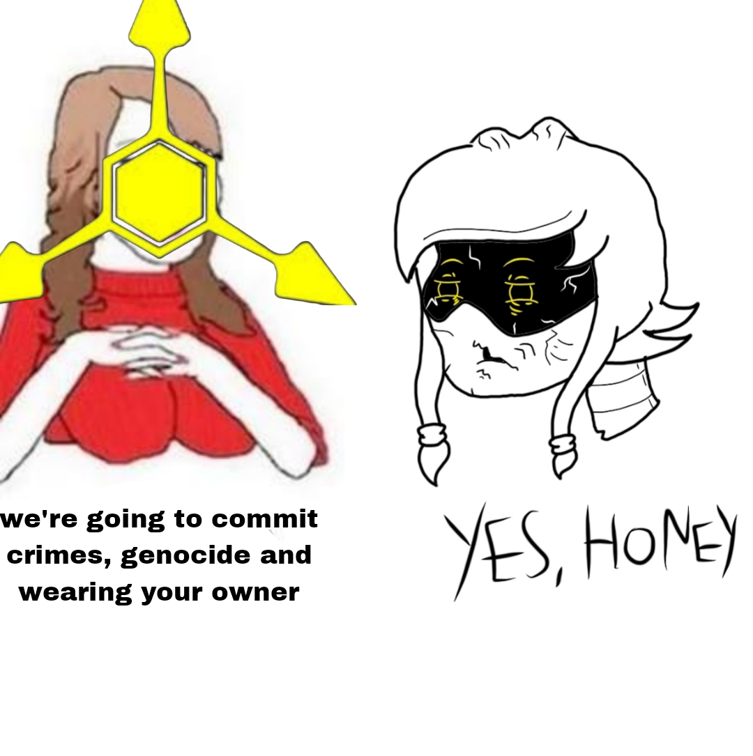 >>319748 >Be Ar(n)on >JcJ reclamation technician >Currently held captive by drones you were meant to be reclaiming >Shame the escape tunnel didn’t work out, you busted your ass off digging it out with a spoon >One of your captors is currently with you in your cell >She is… scary… very scary >Looks very similar to your bosses second in command but the pencil pushing attitude is replaced with, feral savagery >Still your training in drone psychology is making you think she may like you due to the way she acts >But there are also chances she is one of the psychotic programming damage that wants to eat you and she’s playing with her food right now >No way to know until it’s to late >But you really ought to take your chances here >The purple one wanted to squeeze info out of you >You gave her what she wanted >You’re an engineer, not a soldier, the threat of torture is enough to make you talk >Emily… is her name, and she’s squeezing you very tightly right now >She’s looking at you like a hawk eyeing a rabbit >You inhale with all your might to be able to speak and start your gambit >Dissembler Psychology negotiating 101 go! >”Emily, maybe we could go somewhere else? You know, more private” >Her eyes widen into two giant empty circles on her screen >”You could… uhm, be my drone and leave this planet with me?” >A small smile appears on her screen >She stands up and forces you to stand up >She begins leading you to the exit of your cell >Oh god this worked! >Yes! >Yes! >Yes!
