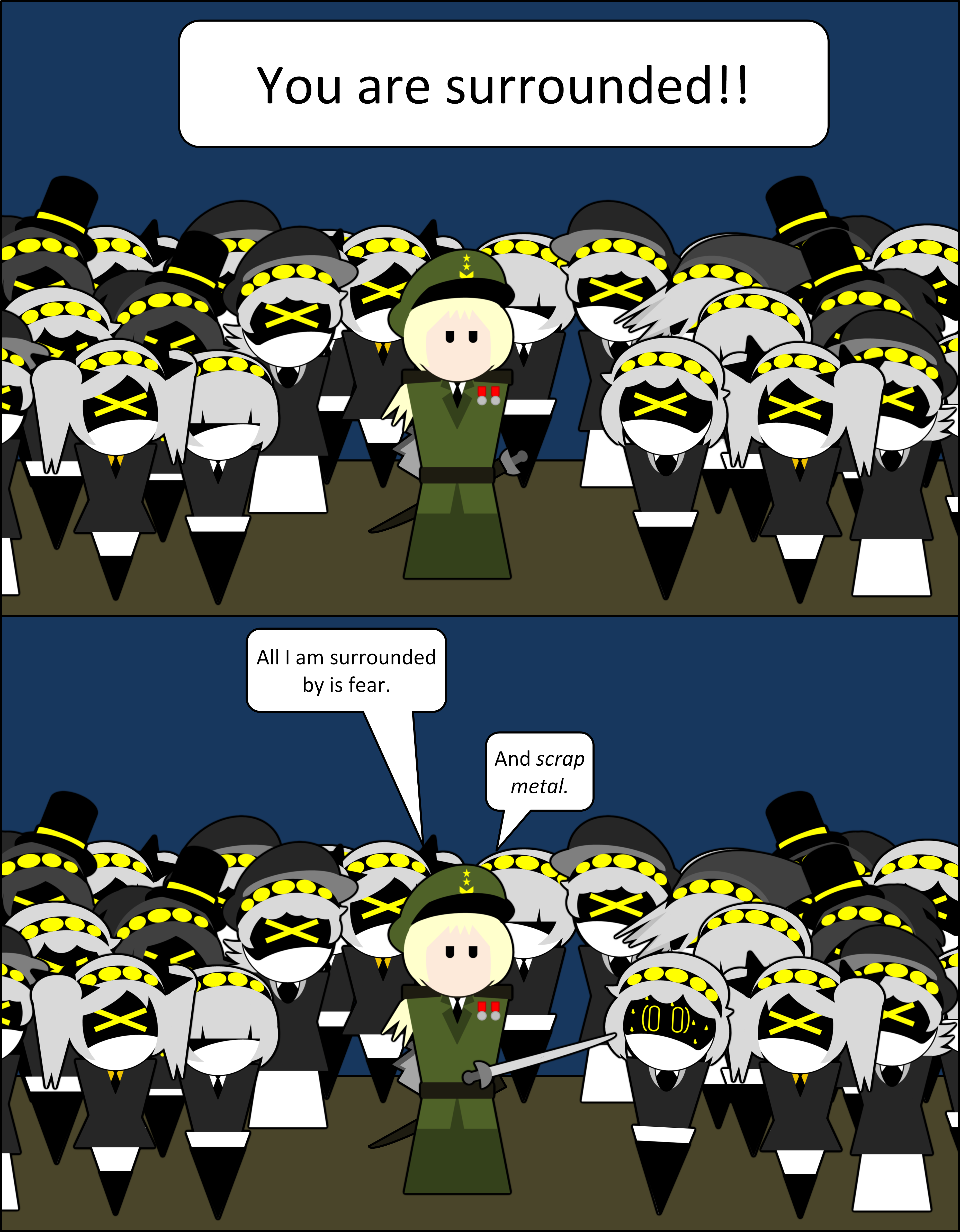 >>321322 Well, to answer that question, the Veteran AU was created. A world after a great trial, where humanity has lost most of its space empire and is now forced to coexist with genocidal robots and a solver infection. Yes, things are certainly not easy for the Union government.
