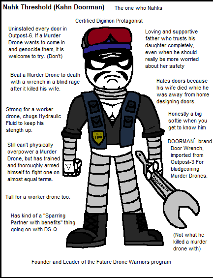 Five tips for living with a disassembly drone, developed by the Union Integration Committee: 1. Don't give the drone your blood. 2. Don't twitch the tail. 3. During periods of heightened arousal, avoid making loud noises, especially screaming. 4. DON'T GIVE THE DRONE YOUR BLOOD! 5. Help the drone apply sunscreen to its chassis.