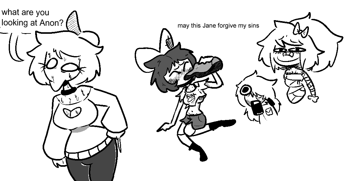 >>321479 >And you sure as hell don’t want to get up from the couch >Y comes up to you and kneels in front of you, placing her hands on your knees >You take the bottle from her mouth and pet her head again >”Good girl!” >Y woofs >You really don’t know what animal she pretends to be >Cat ears… woofing… >Whatever makes her happy >Y slowly starts to sit on your lap >You let it happen and search for something you want to watch >Suddenly Y nibbles you again >What is it this time? >She nibbles you again >Think.. >Again >Hey! You need some time >And again >“What is it?” >She starts pointing at the TV remote with her tail >”What? Pets don’t pick what’s on the TV!” >She nibbles your hand, a bit harder than the last time >You hand Y the remote >She quickly switches it to the channel dedicated to war movies about the galactic wars >She tosses the remote to the other side of the couch where it’s outside your reach and begins hugging you >She licks your face a few times and then turns her head to the TV >Oh you need a drink! >You point the beer bottle at Y >She opens it for you with her hand >You pet her head and kiss her on the screen >She hugs you harder and starts purring >You continue to watch the movie >Some time passes >You finished your beer and you feel a bit rested >Y knows that moves onto another fun activity >Fun for her at least >She lays on your lap with her belly down >She wriggles a bit until you begin to pet her head >You move your hand down her head and onto her torso petting until you reach her midsection >She wags her tail and purrs whenever you move your hand >After a while she wraps her tail around your arm >She pulls your hand lower and lower each time you pet >Eventually you start petting heard head and end on her bottomplate >Y’s purring becomes deeper and more pleasured the closer your hand is to her bottomplate >You catch on to what she wants and begin using your other hand pet her bottomplate, starting near the base of her tail and moving along it’s curve to the spot where her legs are mounted >Y lets out a moan but attempts to turn it into a cat noise “Nyah!~” >You feel a deep discomfort >You shake the feeling and continue to pamper Y >She moves to the side a bit >Just enough to not lay on your lap any more but to still be in range of your hands >She starts poking your belt, zipper and general crotch area >You sigh and start undoing your zipper but Y nibbles your hand >Confused you look at her >She grabs your hand and places it on her head >You resume petting her >She purrs and continues poking your privates >After a while she lowers hear head to your crotch and starts undoing your zipper with her mouth >Then she starts poking again until she manages to reveal your erect member >The smile on her face shows you just how much she reveals in her actions >Y begins to poke your dick so that it flops around >You endure this for a while and then Y bites your hand again >”What now!?” >Y opens her mouth wide and begins pointing to it and then to your dick >Ughhh….. >You pet Y again and after a while you “force” your schlong into her mouth by lowering her head >Y begins to enthusiastically suck >You continue to caress both her head and bottomplate, though you focus more on the bottomplate >You give each other pleasure like this for a while then suddenly Y speeds up >Not the be outdone you start full on rubbing the more sensitive spots of her bottomplate >Y starts raising her ass as your hand moves across her bottomplate >After a few moments of this fast tempo you both climax >Y’s bottom shoots up and then starts slowly falling down, her legs shaking >Y wraps her her tongue around your dick and moves her head up >She maximises the contact her tongue and your shaft make leaving you clean after the encounter >She looks you in the eyes and swallows with satisfaction >Well, it’s over… >It wasn’t that bad… you’re just not very comfortable with it >But Y likes it a lot… and you want her to be happy, so you endure >And it’s done now! You can still do some normal stuff today, maybe play a game… >Y gets off your lap and starts walking to the kitchen… an all fours… again… >You’re not done yet… >You wait for Y to return with anticipation of a death row inmate >When she does she has a metal dog bowl in hear mouth >She gets on her knees and starts begging again >You groan and get off the couch >You walk to the kitchen with Y, her tail wagging enthusiastically >Once in the kitchen you turn to Y and kneel down >You place one of your hands on her head and hug her with the other >”Honey, we’re done for today after this right?” >Y begins to slowly shake her head >Before you can respond you hear the kitchen window open “Hey guys! Can I crash at your place for a while? My house is being fumigated due to an Oogi infestation…. Y!?” >Phi has just entered your house through the window >You and Y look at her with fear >You both stumble for words “Phi! Zis is not vhat it looks like!” >”We can explain!” >Phi looks at you with wide eyes, her jaw hits the floor >You can feel Y trying to hide herself behind your legs