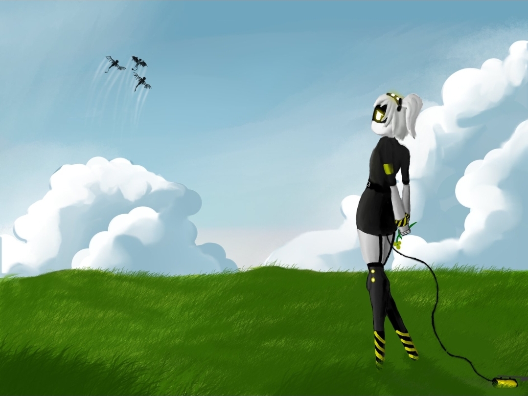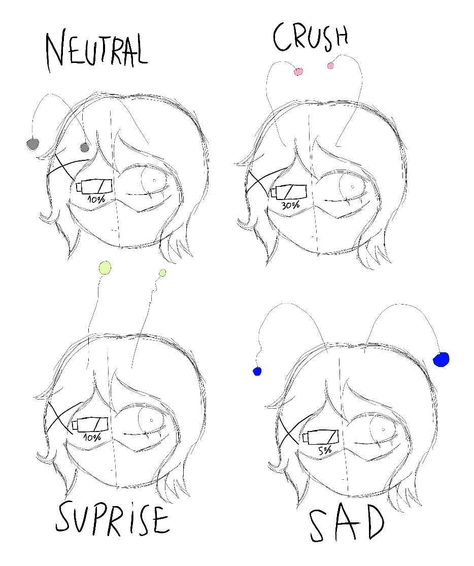 Man, all drama and doom posting is so tiring. I'm still trying to either write or draw. >>321932 I had an idea for an emotionless doomer drone with antenna that show her real emotions like anime girl hair shape to a heart, here's a draft design: >>321924