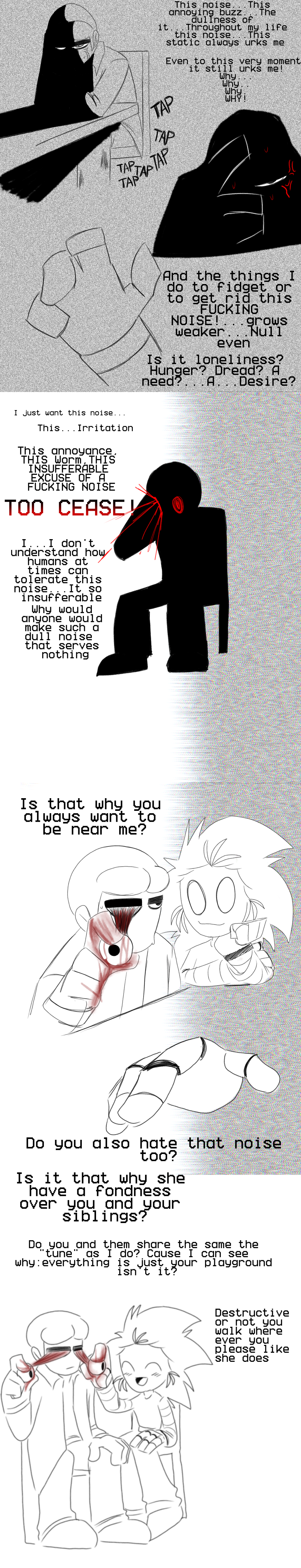 N has nightmares. His POV >My demeanor is a coping mechanism. >Every hour of every day makes me wonder “Am I allowed to be happy?” >I have a girl who seems to like me, generally don’t get screamed at sometimes, and I feel I avenged Tessa in a sense. >But I don’t feel happy, deep down >I remember everything I have done. >I remember the mix of blood and oil on my hands. >I remember having my body dug into by what was left of Cyn as I was turned into… This. >I remember the rabid frenzy I was in with a level of clarity I previously thought impossible. >I remember the guilt of killing Tessa, of tearing her to shreds and skinning her corpse >I remember all the people and Drones I feasted on, so many I stopped counting. >I remember how helpless humanity was >I remember how helpless I was. >It has bought me nothing but agony >To stop being the monster I had become, that was my only wish. >And eventually, my wish sort of became a reality >I decided that if I thought I was good enough, I would eventually become good enough >Good enough to forgive myself >But that time never comes >The only reason I don’t end it all is because Uzi would be upset. >Every day, I look in the mirror and think >To be alive, to be aware in this state >That is the nightmare