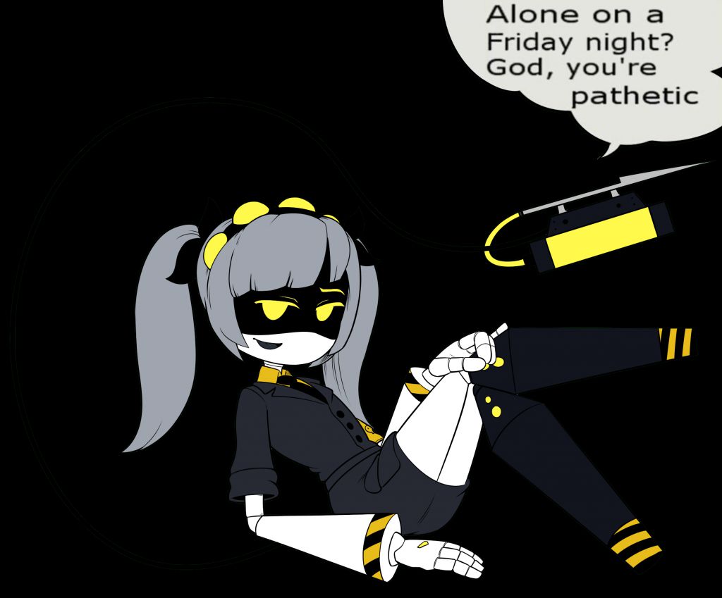 >Tessa brings home Uzi >Releases the feral abomination unto the household >The creature has neither care nor understanding of manners, decorum, authority, or cleanliness >Constantly grease/oil stained, constantly taking random items to make "gadgetry" or for its "lair," constantly exulting its status as a superior being to you "fleshbags," the smell alone is indescribable >Hell, the thing's an electrical hazard too with how often it gets into fights with the pigtailed one and then promptly explodes from one ill conceived project or another >The sole factor that justifies its existence is that Tessa might die of sadness if you ever disposed of the thing, so like every other dumpster pet she's brought in it gets to stay >Plus, to be honest... it's kind of cute, in a pathetic way >Watching it run around claiming to be "GOD!' and nipping, both literally and metaphorically, at your guest's heels reminds you of those stupid high maintenance dogs people used to keep as a status symbol >So if you let her keep the nightmare puppet thing, then this really isn't too bad in comparison >After all, what's the worst that can happen? >It's not like it has magic or anything