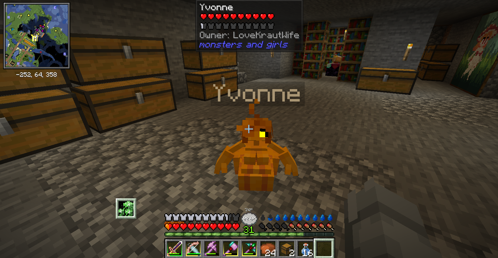 Uhhhh... I need to write while I can, my exams got postponed to the 22nd... but I need to tear myself away from modded minecraft first... Woud you love your dronewife if she got turned into a tiny pumpkin monster?