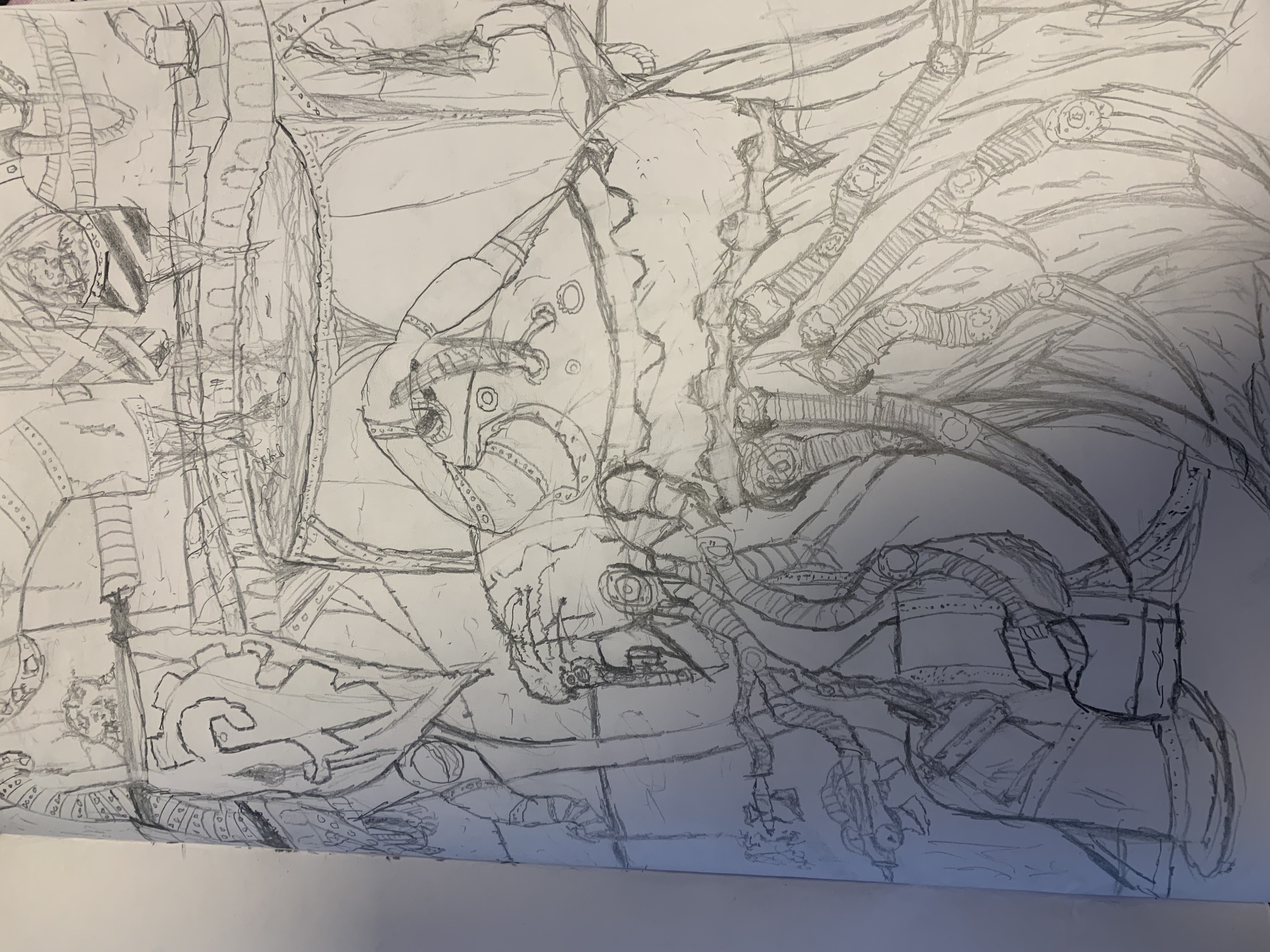 I drew a chaos corrupted Khorne worshiping disassembly drone.
