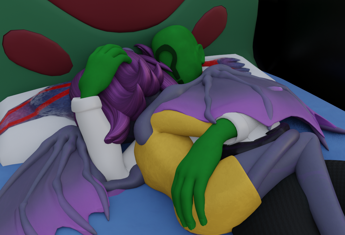 >Be J >Currently in bed with Tessa, V and N >Tessa is snoring loudly >She’s sleeping like a rock >Her sleep is usually heavy but you let her drink a few beers tonight and she stayed up late reading the letters she got with her supplies, even started writing replies to some of them, so she’s not waking up unless someone sets her on fire or something >V and N took total advantage of this and started making out >You can hear the sounds their tongues meeting >It’s sloppier than usual due to N’s upgrade >They really are shameless >You’d tell them to get a room but they act like the whole world disappeared whenever they start sucking each others faces >And you shudder what damage they’d cause if they did this in the storage room >But the situation isn’t that bad >Tessa loves cuddling in her sleep >And since the two lovebirds are busy with themselves she can’t cuddle up to them >So Tessa is currently shoving you into her chest >You can’t daze off into sleep mode in pure bliss due to a certain figure sitting in a chair in the corner of the room >You shift in Tessa’s arms to face her >”Hey, D there is plenty of space left on the bed and Tessa doesn’t mind being used as a mattress” >D’s response is filled with bitterness “A dinnae want tae sleep” >”Not entering sleep mode lowers efficency, and that hurts your ability to hit your quotas, same goes for your squad… where are they anyway?” “They whan oot tae hunt” >”That’s the fourth time tonight” “We have some steam tae let aff, only reason A'm no wi thaim is because the bosslady telt me pic oot guid spots for that plan she has” >She picks up a tablet with a map on it and shows it to you >There are many red circles marked on the map >She places it back on the table and starts fiddling with the map >”D… Don’t worry, we’ll get Anon back I’m sure of it” “Easy for ye tae be care free, snugglit up tae yer technician an all” >Touché >Maybe it’s better to leave her alone for now? >Tessa grabs you by the head and starts pulling you closer to her >She begins to mumble in her sleep “Jaybird…. Save me… The press wants to know… what we did with the toxic waste…” >You chuckle to yourself >No matter what this is still the same old Tessa >Sure she put on a few pounds and picked up some bad habits, despite your best efforts… but she’s the same deep down… for better or for worse >You place your hand on the top of Tessa’s head and start caressing her hair >You wonder how are things back on earth >You hope everyone is doing fine back at the manor >Everyone in the town as well >Though you never really met anyone from there >You stayed in Tessa’s office at the manor all the time >To much paperwork to fill out >The guys you appointed to do that wile you’re gone better not be slacking >But everyone else told you it’s great out there >You look at Tessa again >You try to resist your urge out of respect for D… but it’s too strong >You burry your face in Tessa’s bosom >At least those chocolate bars she’s snacking on when she thinks you’re not looking aren’t going to waste >You begin to slowly drift off into sleep mode
