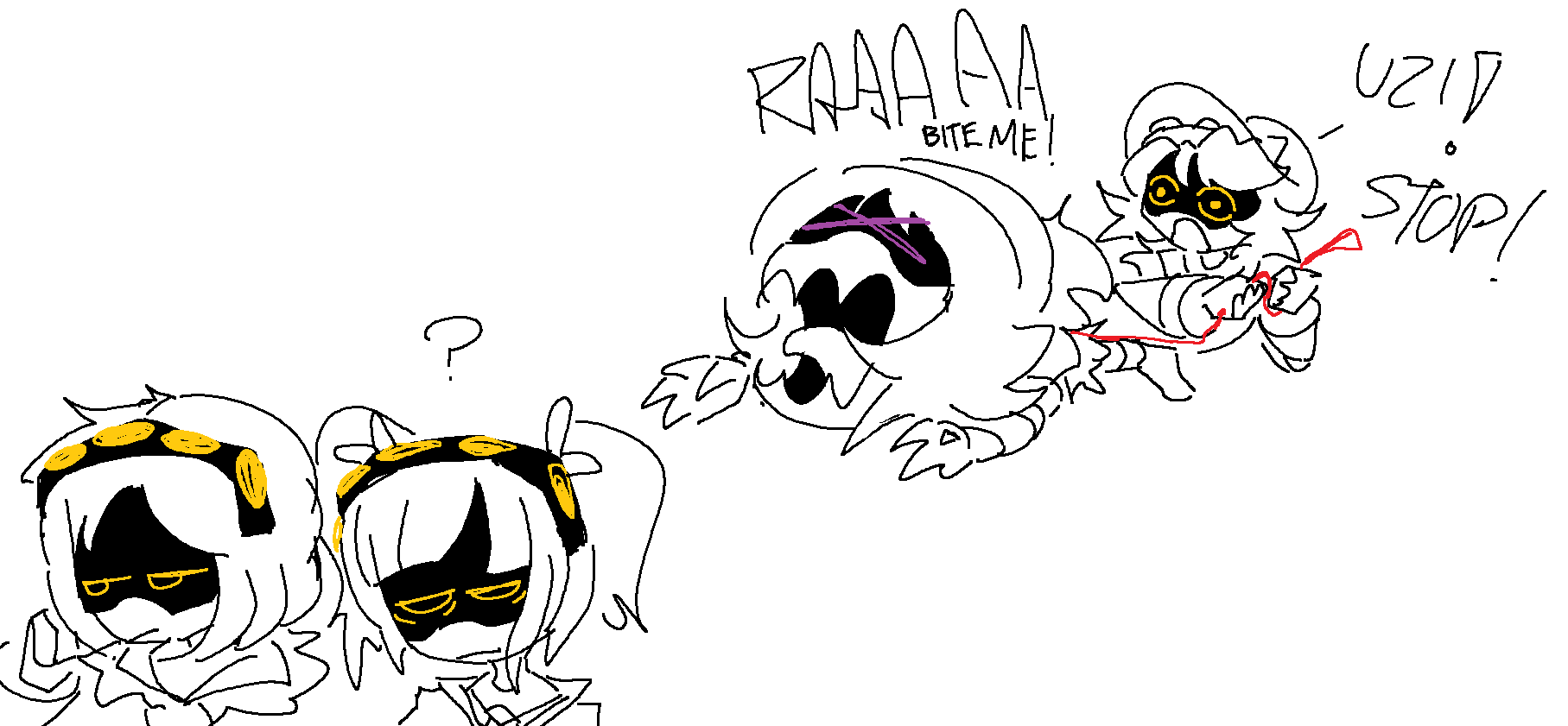 >>323082 (me) And/or maybe a version that went kinda like >>323065, who'd be a total momma's boy because Uzi's the only other infinitely long Nth dimensional biomechanical centipede monster around (his timeline's Uzi, meanwhile, is much happier and better adjusted now that she's not alone in being one)?
