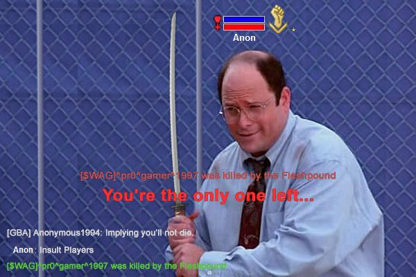 >>324004 >breaking into Mac's bedroom is as difficult and deadly as breaking into the Sierra Madre >bomb collars included >teams of femcels always turn on one another as their prize is within reach