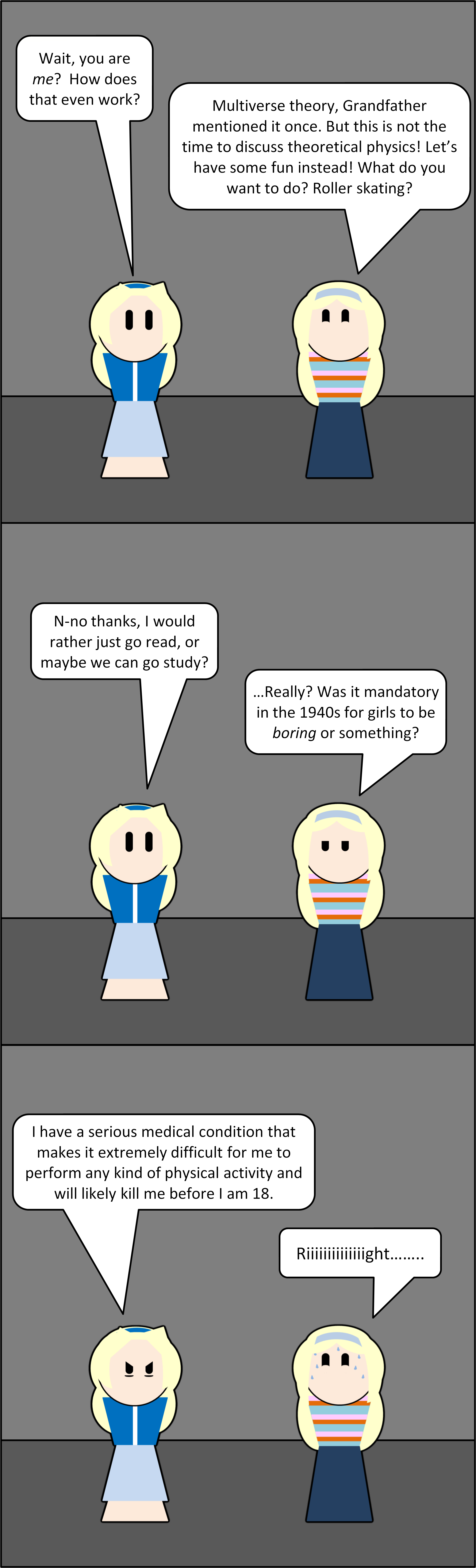 >"Quit joking around that. I was worried sick that you didn't wake up. And you..." >Cyn giggle her nightmare prank was a success although she's gonna be milinea in the metal box.