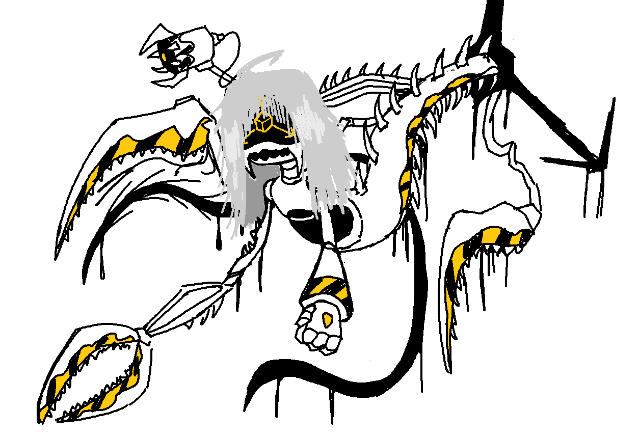 Still, if we want to go the rout of Uzi "growing" her spawn and her body as well changing to accommodate their needs, wouldn't it be likely that she grows more blades and claws and such? After all, solver creatures only need oil to persist, so the most likely adaptations to make her a better "carrier" for such things would be heightened senses and increased deadliness (and or increased personal oil purity, so they can better feed off of her after her own hunts) so she can better provide food for the things.