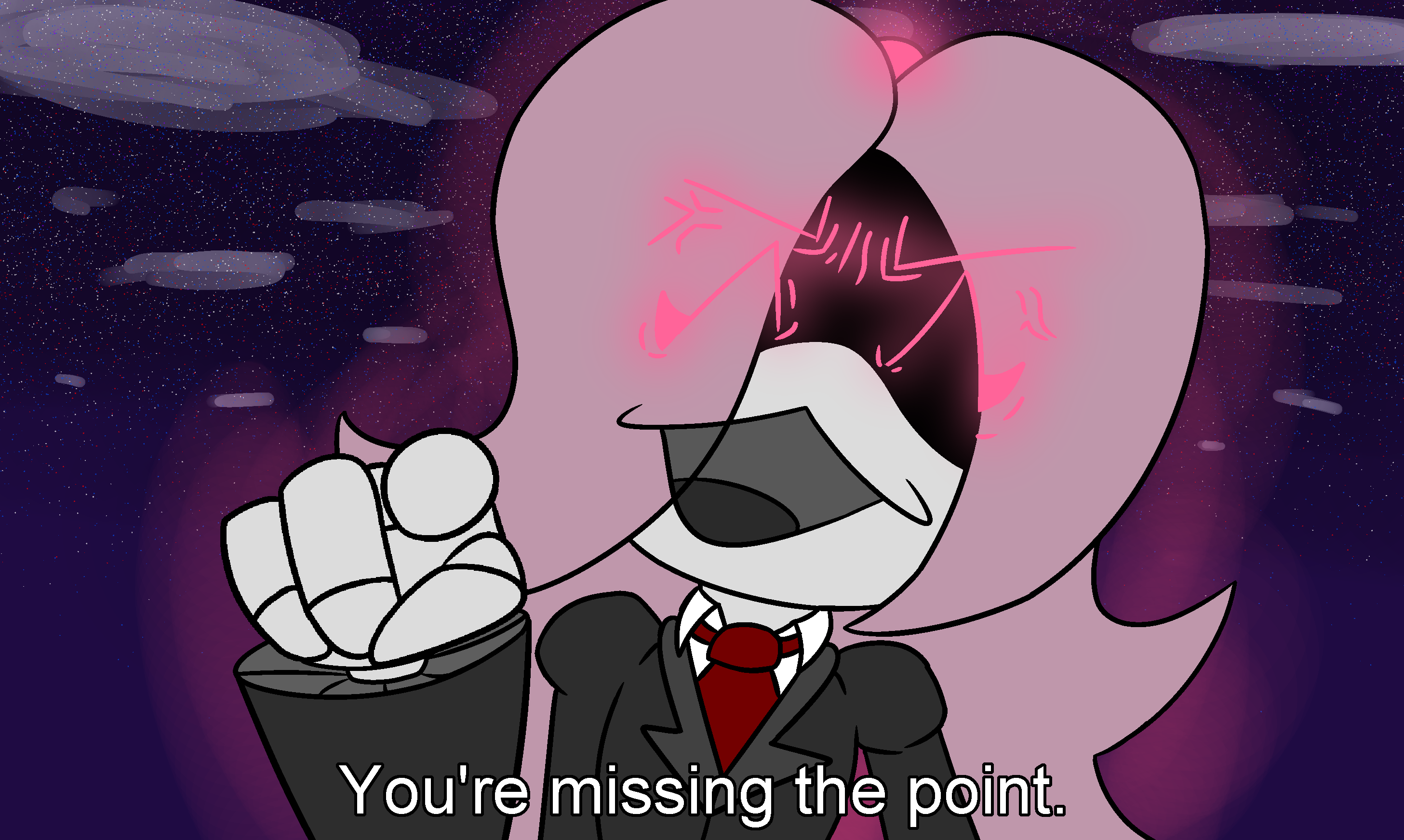 >>323365 >Story is now about Khan, Father, Teacher and the rest of the WDF (and eventually Yeva and husband) systematically researching and exploiting the mental and physical weaknesses of the murder drones to bring them down, like a Hunter game in WoD >Show is 4 seasons long, each of the first 3 dedicated to researching and bringing down one of the drones in question (as well as dealing with the aftermath and/or internal bunker problems: every season after 1 has them include a method of killing the resultant solverpede before it regenerates it's host) >Deaths go in order of N(still gullible enough to trust bombs, but regenerates from solverpede bc they don't know about them yet), J(easiest personality flaws to exploit), V(loner who actually sucks in straight fighting compared to the others), N again(personality flaws are mostly teammate-facing, drastically more combat-intelligence/skill than investigation would reveal, tendency to either hang out at base camp or try and group up with other MDs) >N's mentality gradually deteriorates with time and the deaths of his squadmates, culminating in a complete breakdown in the final season that finally gives him mental weaknesses to exploit >Big climactic dramatic vampire battle at the end, where Khan and the WDF face off against N and a bunch of half-repaired worker chasses (N has been so lonely for so long by this point that he's been following some half-memory about literally making friends from the scrapyard, effectively resulting in a horde of mindless ghouls) >Ns breakdown finishes in a massive rant to Khan about how he doesn't understand what's going on or what he even is (he also learned about the existence of solverpedes + solver flesh over the course of the season, but has no context for it) and he just wants to go home, Khan returns the sentiment and executes him >Series ends with Khan closing the bunker doors and going back to look at Nori's old things, finally realizing from his interactions with Yeva that her core was undamaged by the acid and might have survived >Meanwhile we finally see where the weird black holes that pop out of DDs when they die go, watching Ns fly up and up out of the atmosphere and through the stars until it lands in the hand of a horrific flesh creature >Last scenes are a *Giggle* and then a crunch