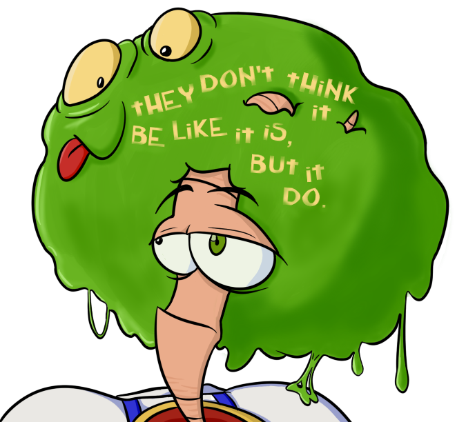 >>323461 >Part of the reason the surviving version is so chill compared to his alternate siblings is that he has a terminal case of "big guy syndrome" >He has always, at literally every stage of his life, been larger and more threatening by far than his earstwhile peers, and therefore had to work extra hard to control his strength and emotions around them so he didn't seem as scary as he inherently was/didn't accidentally hurt anyone >(Lizzy being mkre present in tbis one's upbringing kept him from being retarded and following Uzi's advice about uncomfortable classmates) >This is also part of why he likes theatre/improv so much, as it lets him both sell the idea that he's "normal" for a minute and be all big and dramatic without scaring the pants off of everyone nearby >If he weren't around people so much weaker and more skittish than him all the time, he'd be just as friendly + obliviously menacing as the grub in the original fic