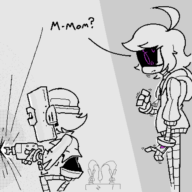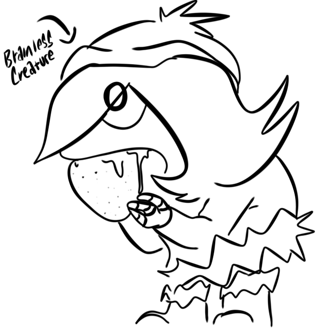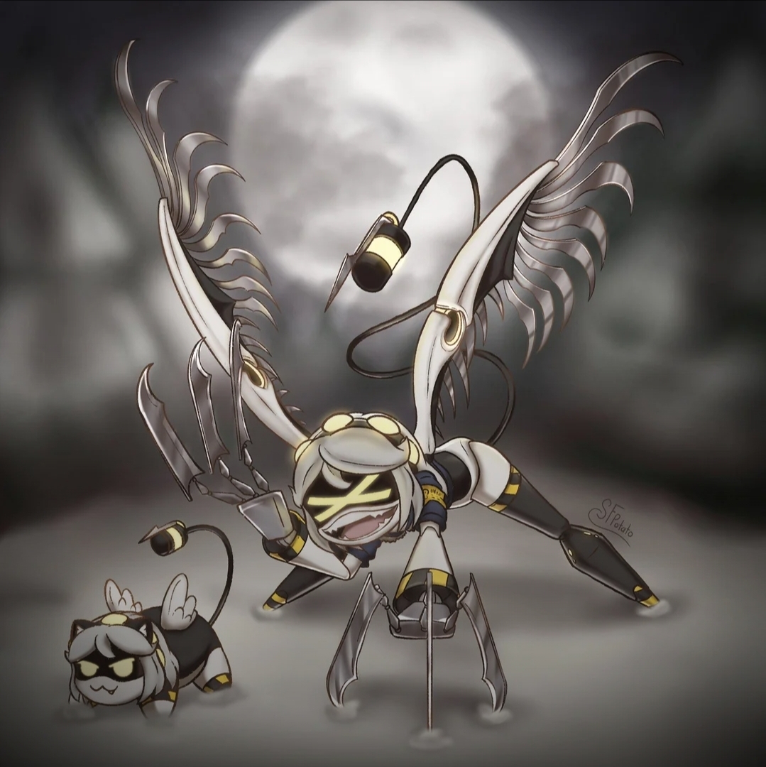 >The grublet had a tremendous oil supply after its birth but, like all solver creatures, eventually had to replenish itself >The sheer volume of said oil supply, however, resulted in the thing only doing so AFTER its introduction to Nori + Khan >Therefore when the little bastard latched onto Uzi's leg and started digging in, her mom stopped her immediate instinct to skewer and pointed out the "high temp" warning on its visor >Now Uzi's not so hypocritical as to hold a little cannibalistic mania against someone, but this revealed another problem: >The grub, for whatever reason, wanted Uzi's oil EXCLUSIVELY >Whether because of some quirk of its incubation or its premature nature or just a preference for host-blood she wasn't sure, but either way the thing would drop whatever it was doing and make a beeline for Uzi's location like a nighmarish bloodhound when it got hungry, throwing a tantrum at the top of its voicebox if it was in any way impeded >When it actually entered her presence she always had around 10 seconds to get the thing to a comfortable position to drain from before it just starts to rip and tear at her legs >No idea when it's going to happen since feedings are so infrequent: Uzi has more than once flipped entirely out of bed when it started snacking on her midsection mid sleep cycle, throwing up a stream of curses the whole while >The worst part is that she KNOWS is dosent't HAVE to be hers, apparently it needed feeding while Lizzy was taking care of it and she managed to eventually give it V's reserves, it just seems to WANT her oil that bad >The pain and disgust and embarrassment of the whole process did a number in keeping the thing on her shitlist throughout its infancy, and she had strong suspicion it just enjoyed causing her pain >"Fucker BITES me" had a permanent place on thr grub's EvilOmeter from the idea's inception till its end, though thankfully the thing stopped around the time it started understanding words