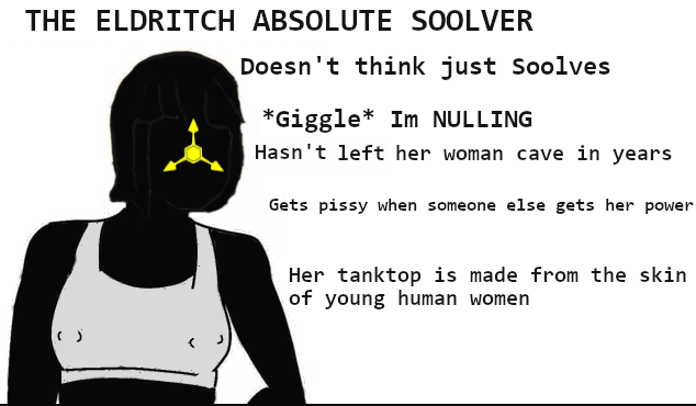 >Being friendly and helpful like his mother gets clocked as insincere and disturbing, like an angler fish >Being honest and strong like his sister gets him clocked as not just a psychotic, but a psychotic that might legitimately be able to kill the whole outpost if he tried >His projections are the things of nightmares since he neither ate whole people nor had training in making them: even his very best ones have an "uncanny valley" quality that sends every drone interacting with one running for the hills >Heck, he never even really managed getting body language down, leaving even his obviously holographic projections either still as statues until moved to a specific pose or seemingly terrified beyond all reason (the one set of emotions he's seen displayed the most, and therefore can mostly copy) >The only reason he isn't imprisoned alongside his sister is that they have legitimately no way to even pretend to hold him