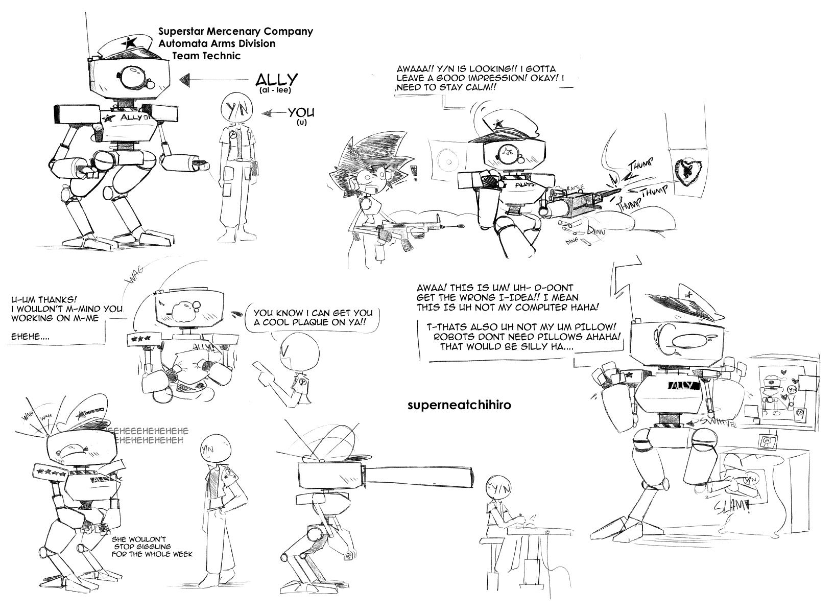 >N and Uzi both hold onto suspicion for far longer than is reasonable >You know who doesn't? >The Bunker >The ENTIRE bunker >Turns out the attitude amongst the general population is "we accepted the Murder Drones and it turned out fine, this thing can't possibly be any worse than them" >And when given the benefit of the doubt, the little critter can be quite cute: like a robo-roach but bigger >This greatly complicates Nuzi's plans to let the WD's general incompetence and hatred for outsiders take care of their problem >This also causes them to suspect a "cult formation" situation around the grub >Cue the two going full Call of Cthulhu on the bunker population: imagining enemies around every corner and a population-wide conspiracy to empower the Absolute to overtake all creation once again when the reality is it's just a bunch of workers talking about the "weird pillbaby" >They only drop the theory when they burst in, weapons armed and ready, to where they deduced to be the Cult's inner sanctum... >Uzi never knew Lizzy that well, much less her address