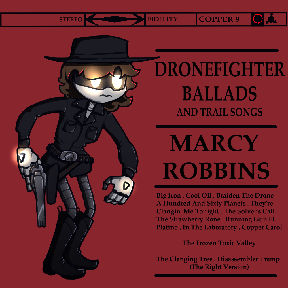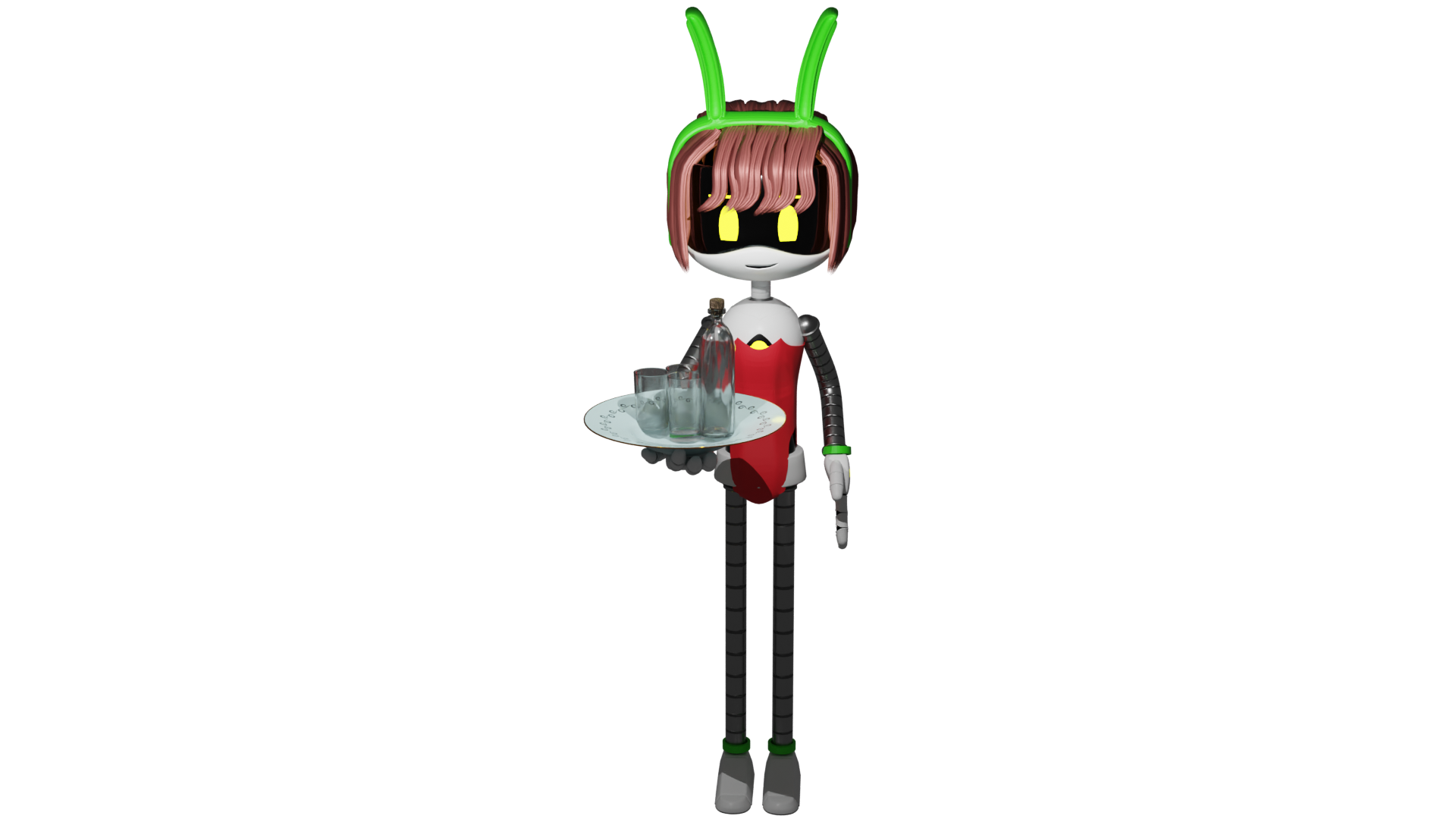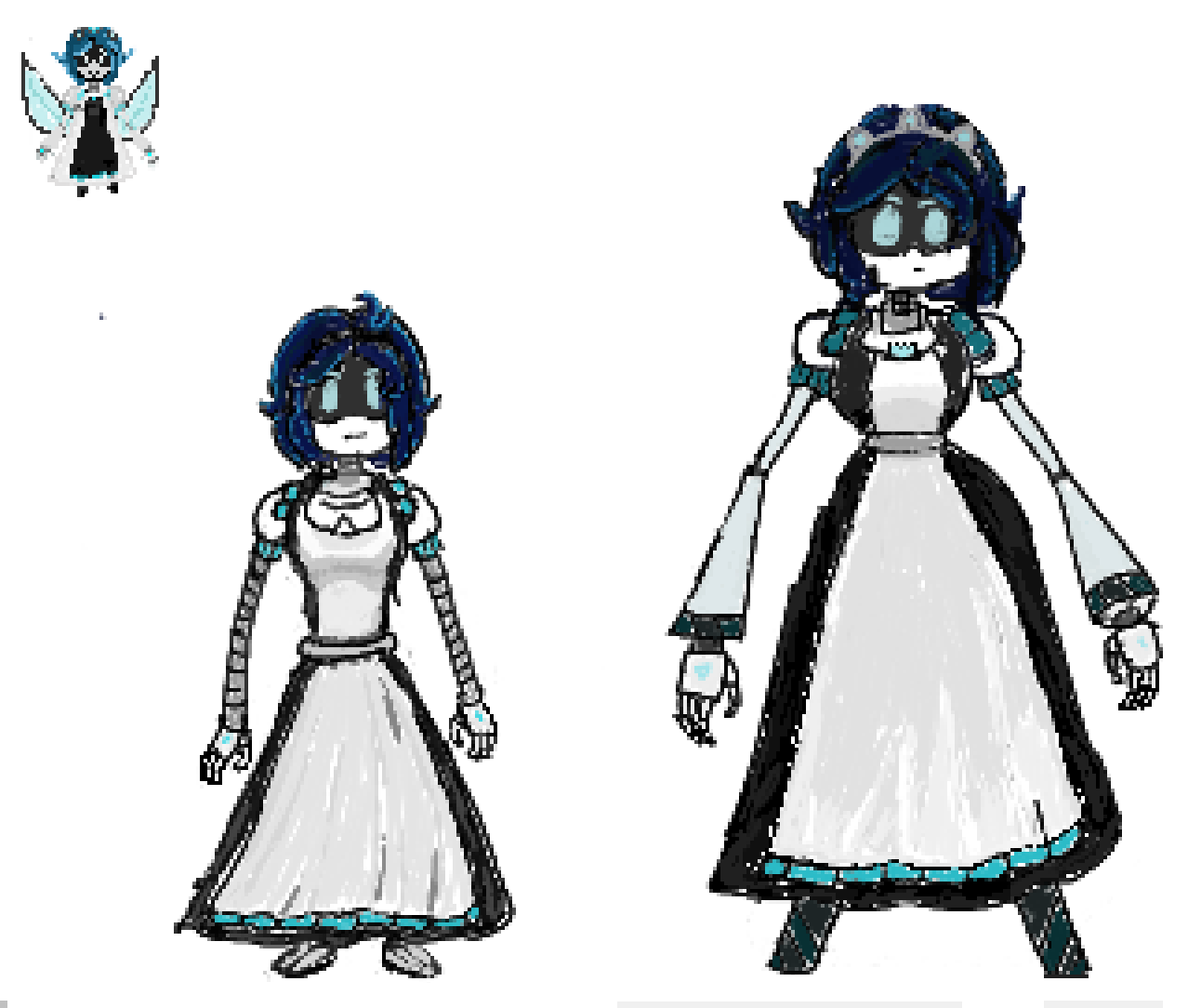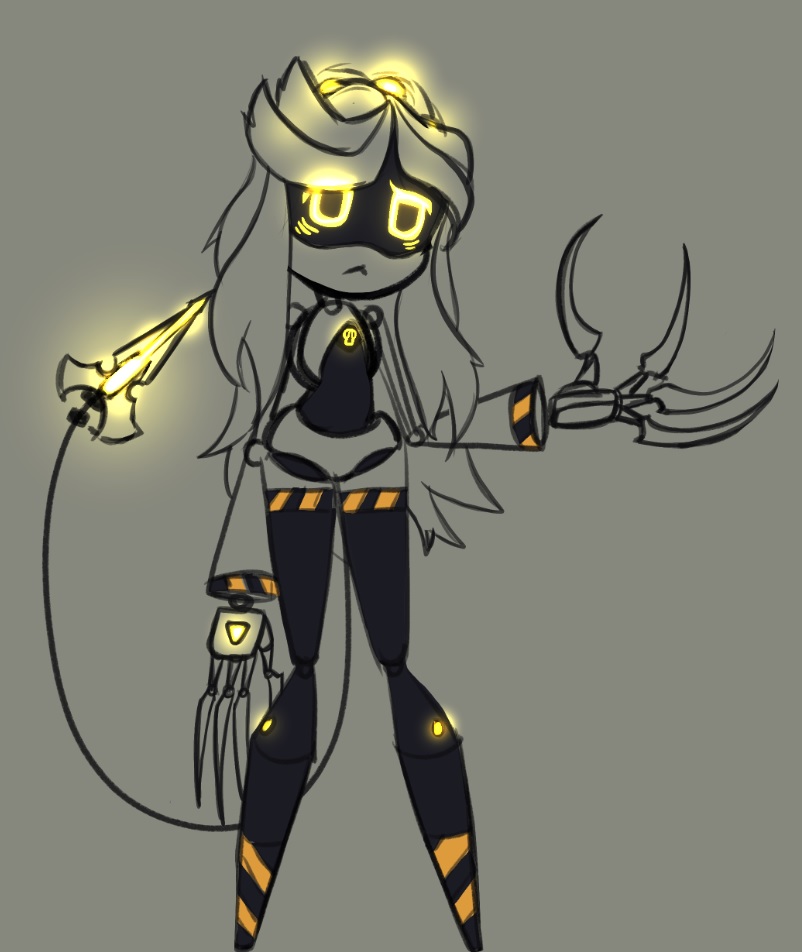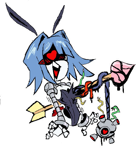 Some lore about Cupidrone >She's an odd disassembler that got disconnected from Cyn's network >That's why her eyes aren't yellow >She's obsessed with the idea of love and uses holograms to manipulate people into falling for each other >Spends most of her days daydreaming about how nice it would be if two people observed were to fall for each other and how perfect they would be together >She likes to observe people from afar to judge who would match with who >Most of her matchmaking efforts don't work, those that do end up working only happen due to coincidences or factors unrelated to her >Takes it as a win if that happens >Her hobbies include: flying, making cool holograms and matchmaking