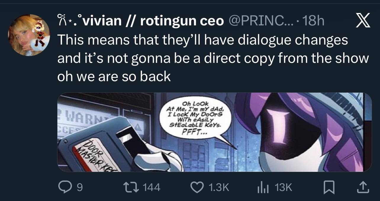 Meanwhile im still trying to digest a good chunk of corru's character information because theres simultaneously so much we know and so much we dont it makes for a very compelling story, same with the setting itself