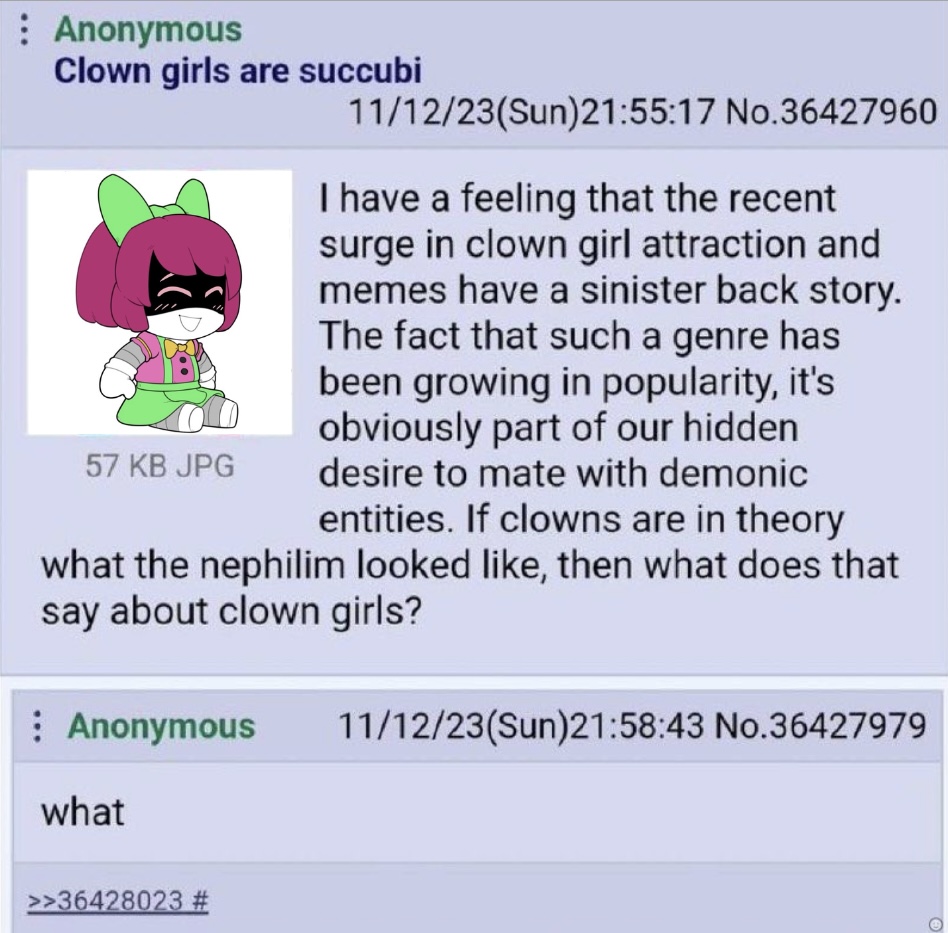 >>324578 >>325785 >be me >writer of the second one >remember N coming up with the idea of logging what his and Uzi's hellspawn does to see if he's pure evil >realize it wouldn't be Uzi holding on to suspicion of Geist well past the point there's any rational reason to >realize it would be N talking far too long to see what's going on with his son, out of blaming himself for not seeing Cyn was gone and doing something about it >realize Geist's kindergarten teacher being asked if he's done anything Antichristish loses almost all bueno comedy value because now it's not coming from Uzi being her autistic self in a tragicomic fashion, but from N blaming himself for humanity potentially being extinct for all he knows