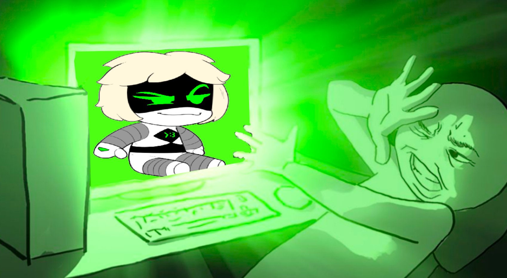 >In a distant disused corridor, N is getting "closer to God" >When suddenly in amongst the moaning a blue spectral figure appears >Rebecca, arrayed in all the glory she can muster, prepares her whole speech about "grave sins" and the "sanctity of death" >Then she sees N >N in the arms of some stinky purple femcel >REEEEEEEEEEEEEE >The two fumble about each other's arms as a full blown banshee comes screeching down the hall straight towards them >Untangling himself first, N brandishes his crucifix >He's pretty sure his "license to marry" from Khan isn't going to stop this, but he has to try! >Then midway through through repeating the Exorcist a great green light simply overrides the entire corridor, greys and blacks and blues vanishing in the face of its brilliance >Of course Uzi brought her railgun ghost hunting >And of course she would think it could kill ghosts >Isn't that how it works in anime after all? Can't energy attacks hurt anything? >Heck, lasers even worked in the marshmallow man movie V wanted them to watch! >When his optics finally adjust he's downright unsurprised to see the monster gone >But it's hard not to be impressed with Uzi >That smirk of triumph, those golden-yellow eyes, the way she has to practically point the barrel at herself to "awesomely" blow the smoke away... >It all just makes N want to pick her up >Hold her close >Get back to what they were doing >After all V's gone... >V! >Biscuits, V, the ghosts, it's all real! >It's all real and she's alone! >Ignoring Uzi's yelp he sweeps her off her feet and starts swooping through the bunker >They've got to find her before the ghost does! >Still >The back of N's mind tells him that they're forgetting something >Wasn't there another step, something the people in the marshmallow movie did when they lasered the ghosts? >Whatever, no time! They had to find V right now!
