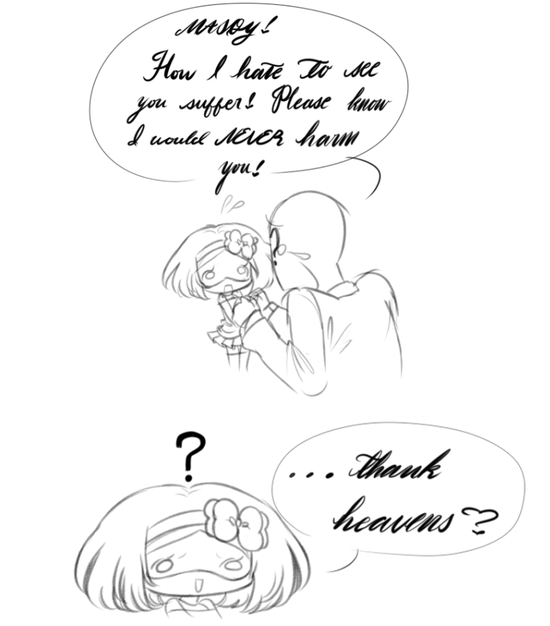 >>328919 >>328960 None of the other Anons who responded are me. There is no lore that I made up specifically for that drawing, it was done by request from an Anon because I haven't drawn much in the past few weeks and wanted to keep my skills from degrading too badly.