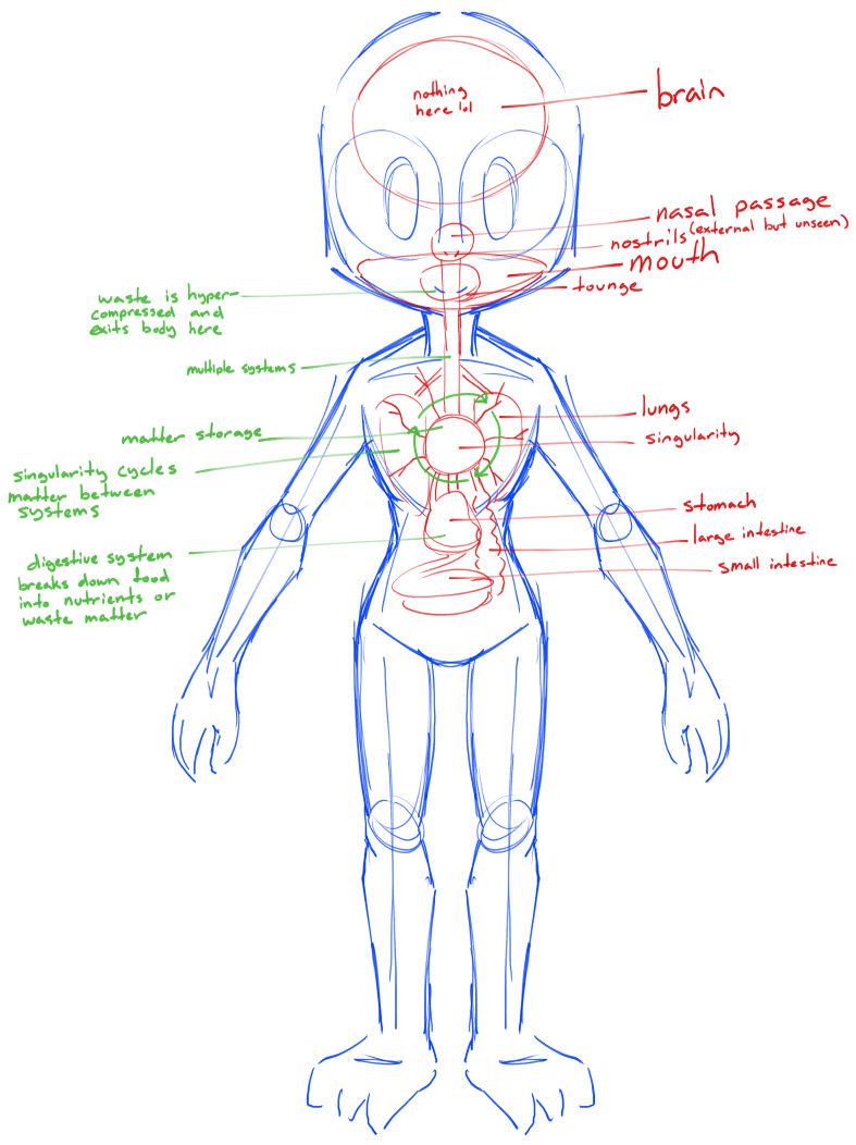>"Hey Uzi!" N said as he walked through the door to the younger Doormans' residence. Unusually for him, his smile didn't reach his visor. He swiftly turned out of the doorway to the side. >Geist sighed as he scuttled in, his long white emo hair dragging along the floor as his head hung low, his father intently watching him. One of the fleshy tentacles he had wrapped around himself shot from his side to close the door behind him, before it resumed being used to soothe him. "Hey Mom," he said as he heard her run over squealing with joy. >"How's my little man?!" Uzi cried as she scooped her son off the floor and hugged his vermiform body tightly. As usual in their interactions, her eyes were tired and couldn't make direct eye contact with him-to the extent that the three pointed sigil on his visor constituted eyes. Geist returned the hug as best he could, laying his head on her shoulder, wrapping his tentacles around her, and spreading his little centipede legs out as far as they could stretch before pressing them against her. The two loosened their holds on each other, letting Geist notice his father slipping down the hall to his parents' bedroom. The smile that had been starting to form from being held by his mom faded at the sight. "How's being a first grader so far?" she asked as she walked over to the couch. Sitting down, she set her son next to her. >As his tentacles returned to wrapping around his body and he coiled up on the couch until he was comfortable, Geist ground his teeth as he thought of what to say and how. "Ms. Robbins is really nice, but... I don't feel like the other kids were okay with me being there. I mean, Yeva was, but everydroney else..." Internally, Geist cursed himself for talking like that at school. He KNEW something didn't feel right, but Dad keeps saying it and it just slipped out. >It was still oddly calming when everyone laughed at him for it. Like he was normal. >Uzi gently hugged Geist again. "Remember what we tell people who think you don't belong?" >Geist grimaced. "'Bite me', I know, Mom." >"Exactly," Uzi said, releasing her hold on her son. Holding out her hand, she telekinetically grabbed a comb off the coffee table. "Now hold still, I need to straighten your hair out." >"Mom...!" Geist whined, as she started combing his hair. He "Ow"ed with each tangle the comb got caught on >"Geist, you have this great hair and you let it drag on the floor," Uzi told him sternly. "I'll keep having to do this until you start keeping your head up." After a couple minutes, she was done. To reassure Geist, she offered her free hand and held a couple of his tentacles when they snaked into it. >Now that he could get a real word in edgewise again, Geist dropped the bombshell he'd long wanted to ask his mom:>"Mom... why am I like this?" >Uzi's eyes went hollow. "Like what?" she nervously chuckled. "The raddest dude in P.S. 5?" >"Mom, it's not funny..." Geist sighed. >"Sorry, heh," Uzi said, massaging the back of his "neck", ahead of his dorsal spines. "Uh, Grandma and Grandpa told you already. We put your core in an untrained neural network body and that body just... turned into a grub thing. And you've been growing ever since." >"Yeah, but why?!" Geist demanded. "Why did I turn into a big bug?!" He started uncoiling, as he held himself tighter. "Why don't I have normal eyes?! Why does Dad try to avoid me?! Why do you try not to look at me?!" He cried into a couch cushion. >"Geist..." His mother reached out to stroke his back, starting just behind his spines. >"Are you and Dad hiding something from me...?" Geist asked, muffled by the couch he was still burying his face into. >Uzi's eyes went hollow again. For a brief moment, she flickered as a monstrous shadow filled the Doormans' living room. >"... Dad and I will tell you more on the weekend..." Uzi said nervously.