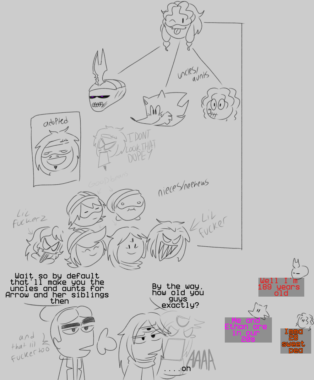 >While these issues would be bad enough by themselves, they compound on top of another major one: N and Uzi are just not ready to be parents. >They did not want the grub, did not expect the grub, and certainly don't intend to put their whole lives on hold to make sure it's living its best life, even if they collectively still have enough doubt not to ice the thing immediately. >Still the hostility that having to take care of the thing instead of doing the "edgy teen stuff" they want generates is noticeable by both parties. This tends to even further justify their attitudes and fears regarding the thing as noticing their partner's hostility triggers the other's issue and vice versa. >As it stands, the thing would all but assuredly be dead by now were it not for the Evilometer and Nori's intervention. >The Evilometer gives them a justified point at which to kill it (which stays their hand in particularly harsh or hostile moments) and the Nori/Khan oversight means that "disposal" via anything other than an accident of bad parenting is going to bring hell down on their heads, resulting in the Hazard List and its shenanigans. >Both only cool off from their initial hostility after a year+ of proving it isn't hostile, and even then the frigidity of affection between them and the grub remains as they grapple with "maybe not evil but that doesn't mean safe or good for Uzi" and "I hate how this horrible thing proves I'm a monster" respectively along with "I just don't want this thing around" in general. >This only truly ends around mid-childhood as the thing starts having trouble navigating the world as an increasingly powerful Solverpede and he and Uzi bond over her teaching him her tricks for it.