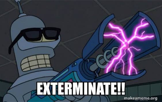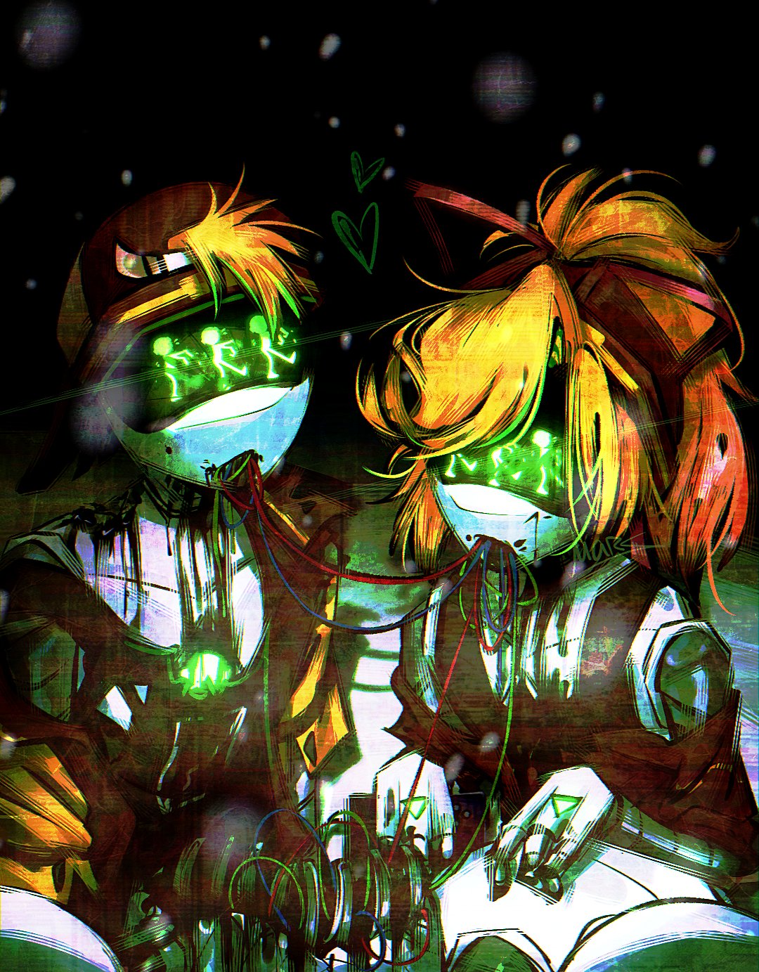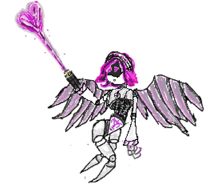 >Cupidrone was flying through the abandoned streets of Copper-9 when suddenly she spots two sources of light coming from an alleyway >She flies closer to one of the buildings and digs her limbs inside the aging concrete >The female worker who was pressed against the wall by her male counterpart could have spotted a row of pink lights peeking down the alley >However, she was too distracted by her boyfriend’s tongue wrestling inside her mouth to care about such base things as self-preservation >Cupidrone’s tail flicked as she climbed up the building jumping from one side to a frost covered fire-escape. >A deadly icicle was dislodged by her ungracious landing >”You heard something?” Spoke the male drone >Cupidrone projected holographic hearths around them. >”I think…I saw something pink out of the corner of my eye” She pulled the male closer towards her, pressing their bodies closer to one another >”Rebecca was right, the mood does make a difference” He parted her bangs then he stroked her cheek his hand unzipping her jacket >The workers blushed as they leaned into each other, a mass of snow fell from above snapping their trance >The couple stops as snow melts of their frames and stare with hollow eyes as death approaches >Two pink heart eyes illuminate a slightly open smiling mouth >A humanoid creature descended headfirst down the side of a fire-escape situated above them >”Keep going, you’re fun to watch Cupidrone spoke as her holographic projector glowed pink in the darkness >”Wierdo” They shouted in unison “Creep” >Cupidrone couldn’t help but feel disheartened by their outburst but some part of her was prepared for it >Despite her overwhelming curiosity and excitement, she felt a small modicum of shame or guilt as she observed the couple >The drones proceed to get back in the mood as they saw her fly away >The male drone swiped the snow from his helmet then he leaned on the female drone causing her to stumble into a pile of soft snow >Pink two-dimensional hearts and sparkles flickered around them >She giggled then threw a hastily made snowball on his visor as his rapid steamy breaths tried to cool him down >Snow melted in their vicinity as the female drone was pinned down by the male >She caressed his chest with a warm hand; his maintenance hatch was almost opened. >She screamed, weakly she pointed her trembling hand at the apparition before her >A murder drone, claws dribbling with oil, his tongue licking up a worker carcass’s neck >Its only hand hung limply as torn cables and leaking pipes dribbled in absence of a lower half >The pink tined flickering murder machine tossed the drained shell aside, causing it to fizzle out in a garble of pixels >Her companion couldn’t muster a response as he looked over her at a similar image > A female murder drone that swayed her hips as she approached, her smoking gun arm raised proudly, as she eyed up the frightened drone boy