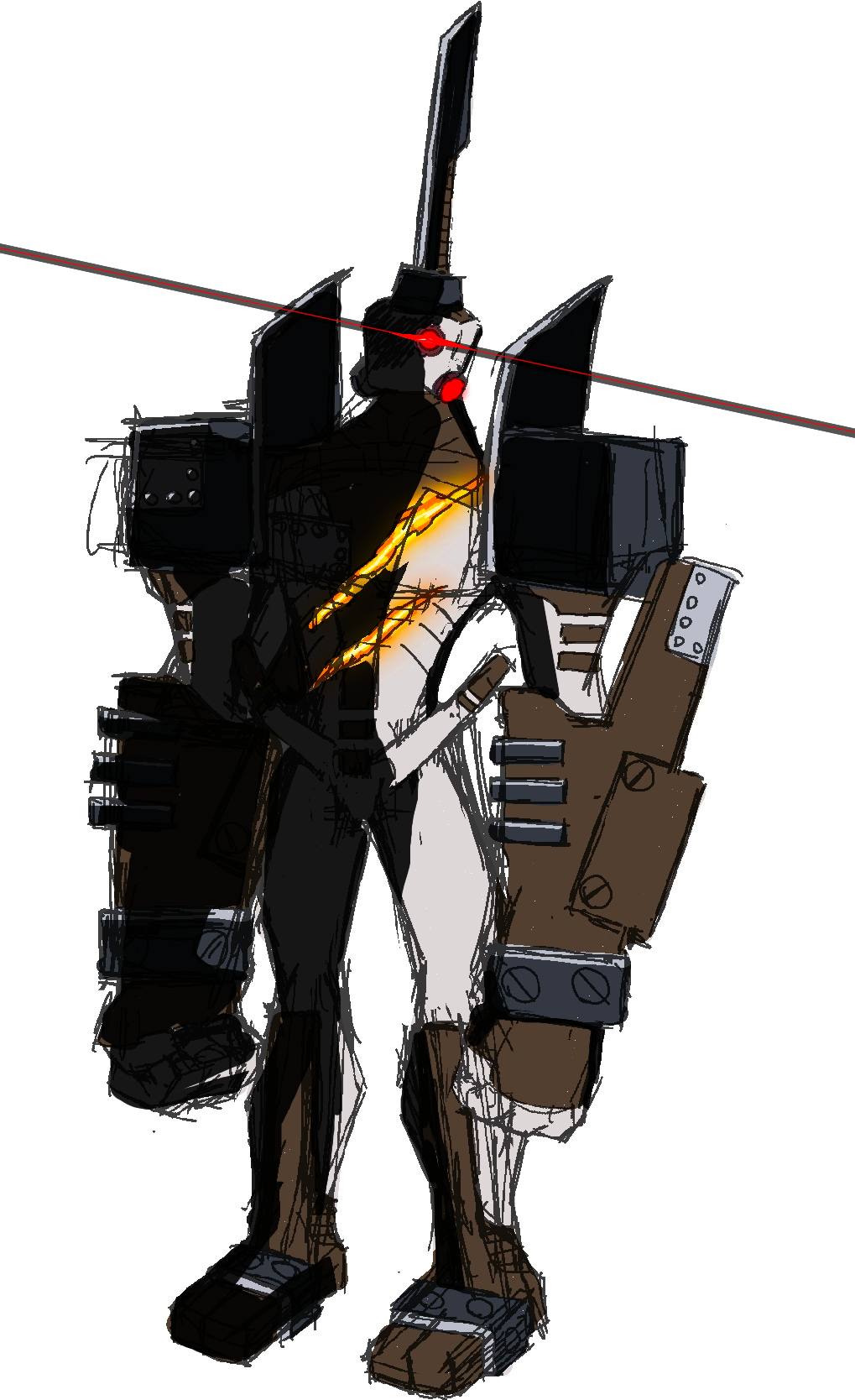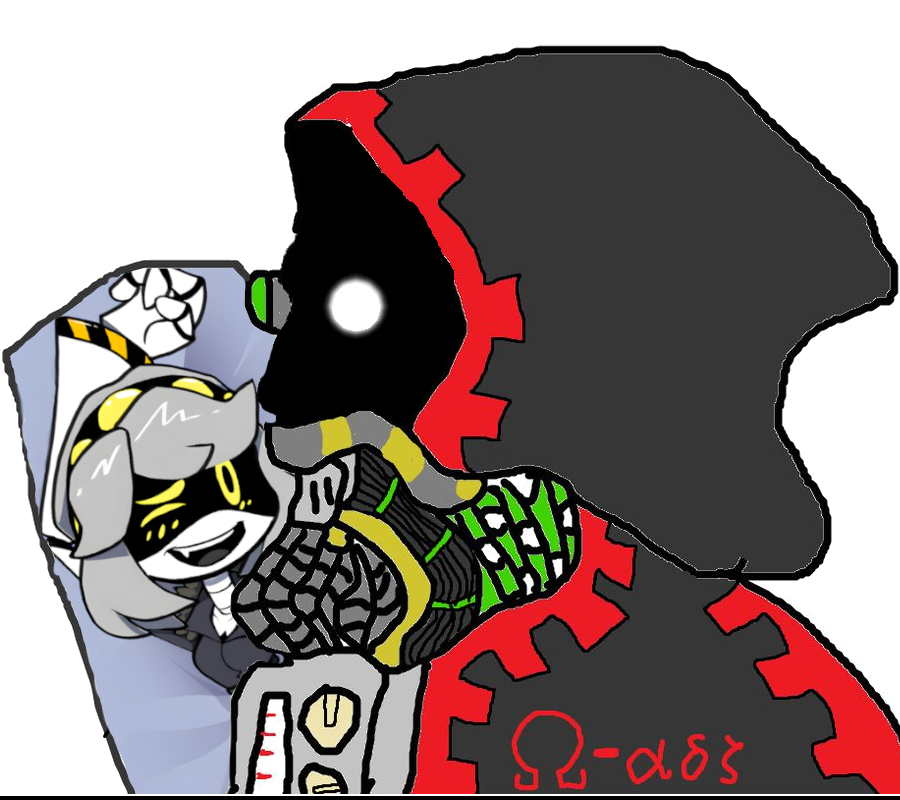 >during one of Pavos deployments to a warzone Cyn had made a murder drone version of him >Cyn told this copy that if he can kill the original before she eats the planet she'll keep his backup >months and months of them fighting led to them developing a rivalry >Pavo would always kill his copy, but every time was a close call for the sentinel drone >his copy could always just come back after each death, but Pavo had to win every single engagement >eventually Cyn ate the planet >the two Pavos were trapped on a chunk of the shattered planet, which was caught in the gravity well of the massive [NULL] eating the planet >on it was a single voidship big enough for one person >SD-P(avo)s nanite acid container had burst, splattering a goid portion of his body in the substance, preventing him from regenerating >Pavo had tried to grab his copy to try and rescue him but his hand was slapped away with a glare from his copy >"There can be only one Pavo."